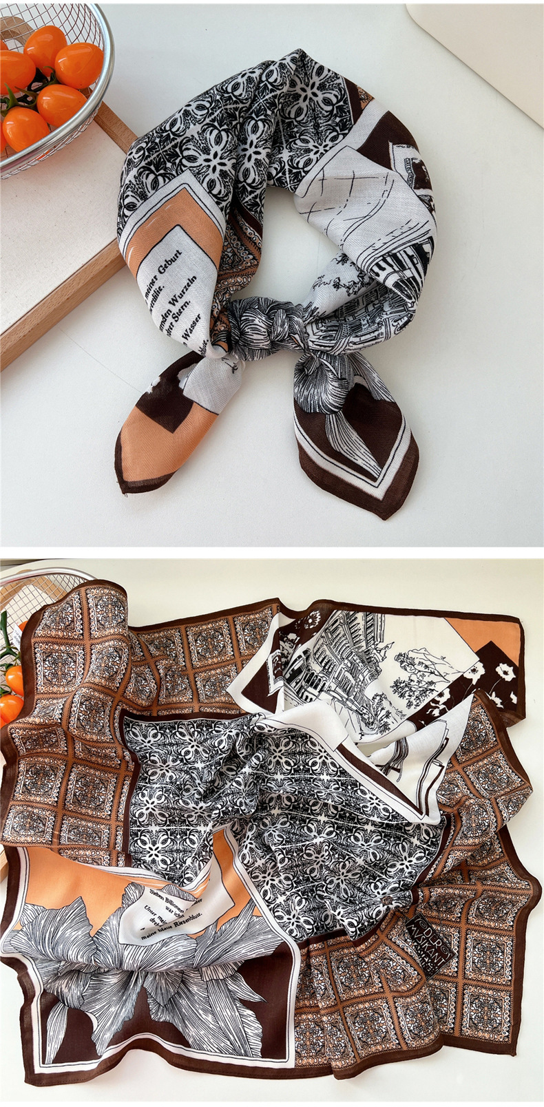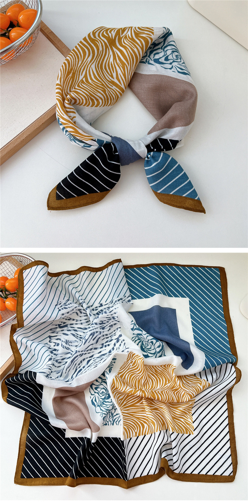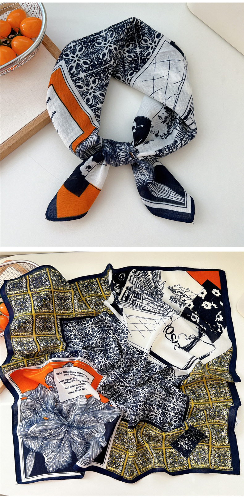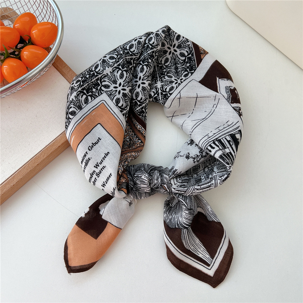 65 면 및 리넨 작은 광장 스카프 여성의 봄과 가을 한국 스타일 패션 올 매치 헤드 스카프 장식 작은 스카프 인쇄 스카프스토어 가기