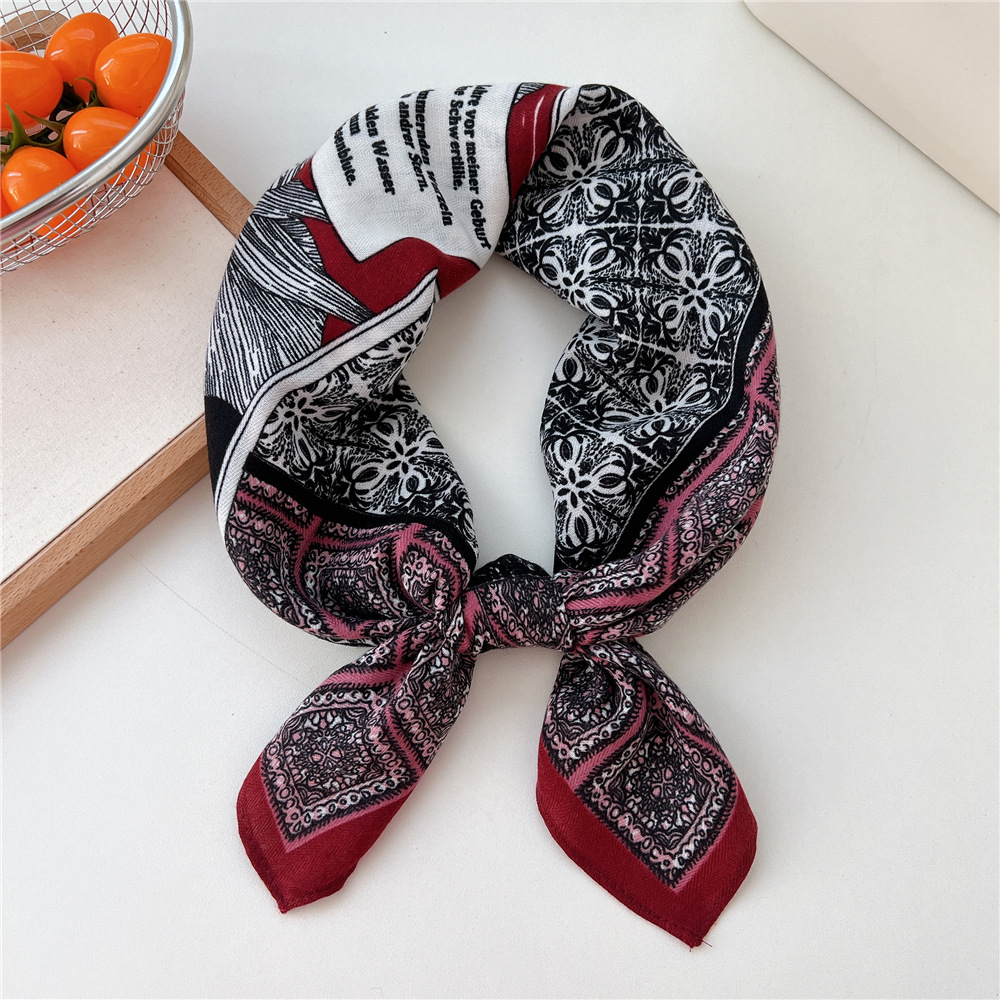 65 면 및 리넨 작은 광장 스카프 여성의 봄과 가을 한국 스타일 패션 올 매치 헤드 스카프 장식 작은 스카프 인쇄 스카프