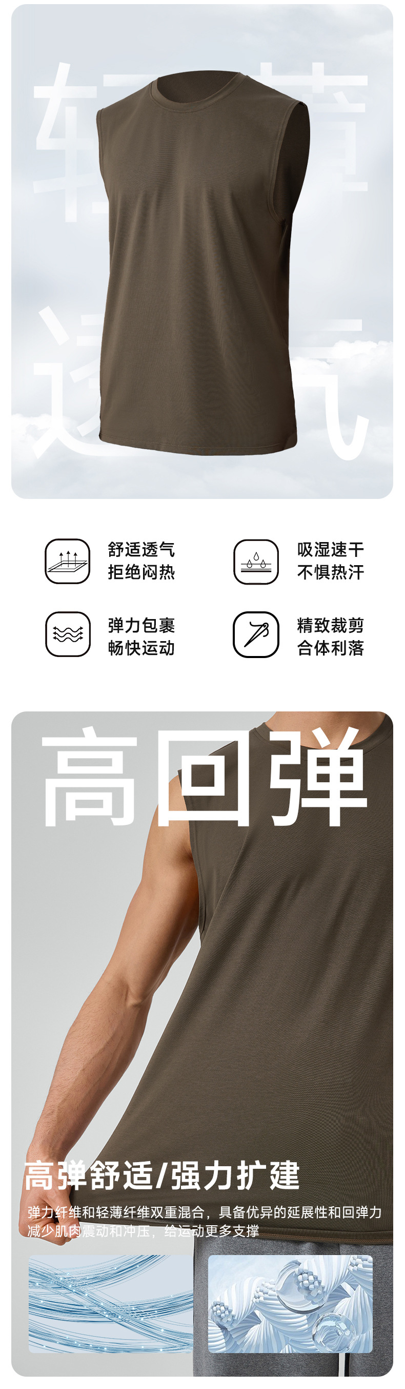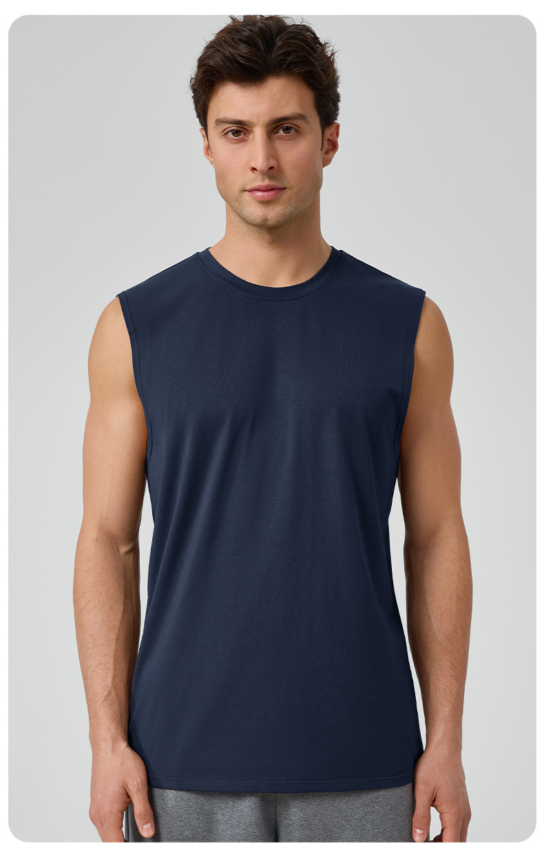 남성용 느슨한 스포츠 조끼 모달 멋진 통기성 와이드 어깨 민소매 피트니스 착용 야외 달리기 탑 51118