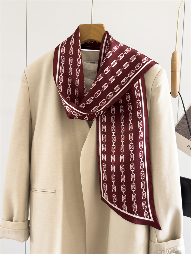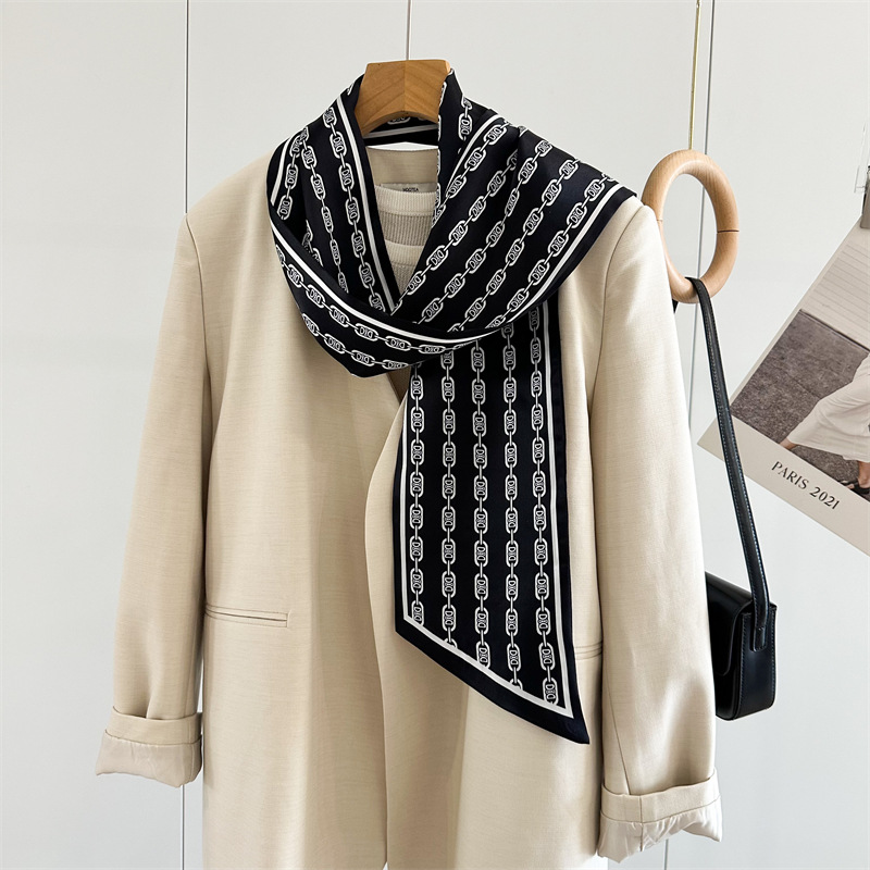 실크 스카프 여성의 직장 기질 심플 스타일 뽕나무 실크 스카프 얇은 좁은 긴 더블 레이어 양면 스카프 리본스토어 가기