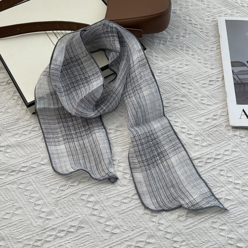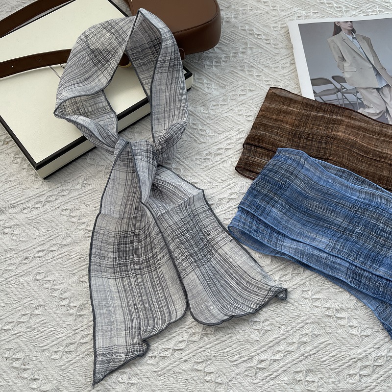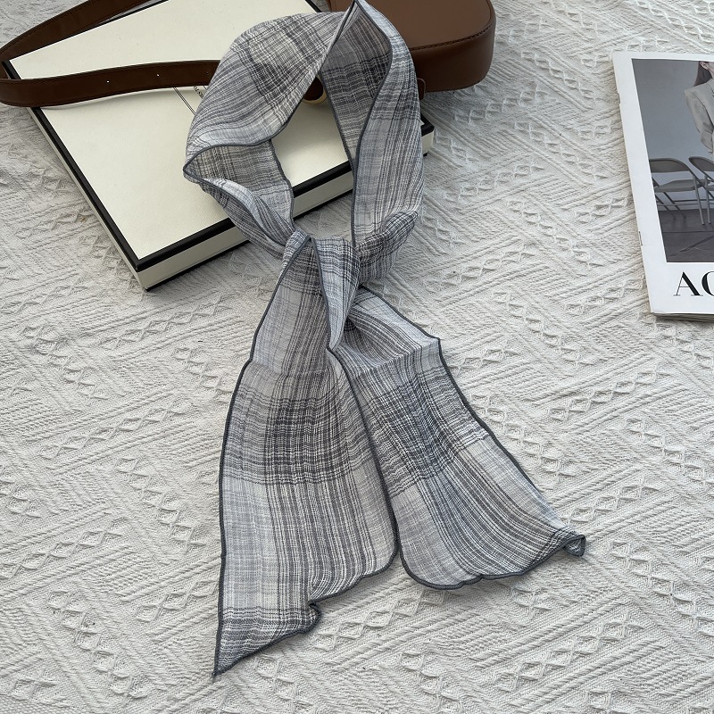 작은 스카프 2025 봄과 여름 새로운 여성의 얇은 장식 스카프 Ins 스카프를 가진 한국 캐주얼 다목적 리넨스토어 가기