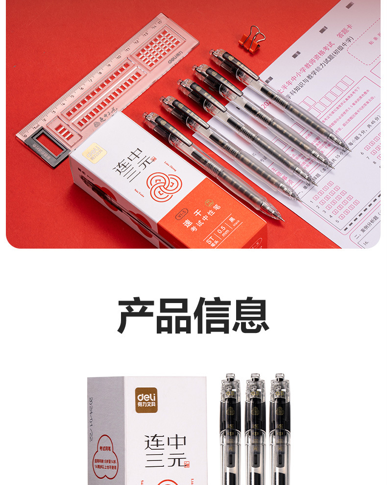 델리 V1-S 속건성 프레스 시험 젤 펜 0.5mmST 헤드 매끄러운 검정색 학생 브러쉬 펜 시험 펜