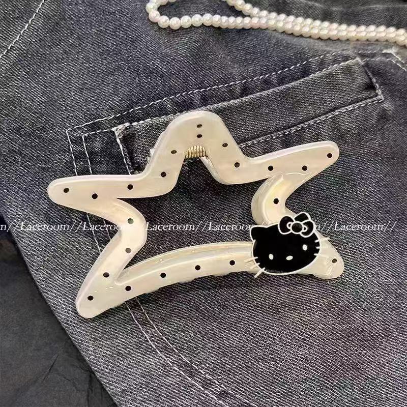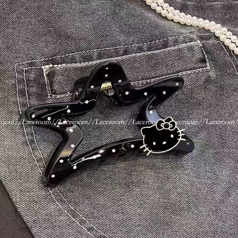 한국 이스트 게이트 블랙 키티 에이지 감소 달콤한 쿨 y2k 소녀 하트 만화 귀여운 웨이브 도트 그랩 클립