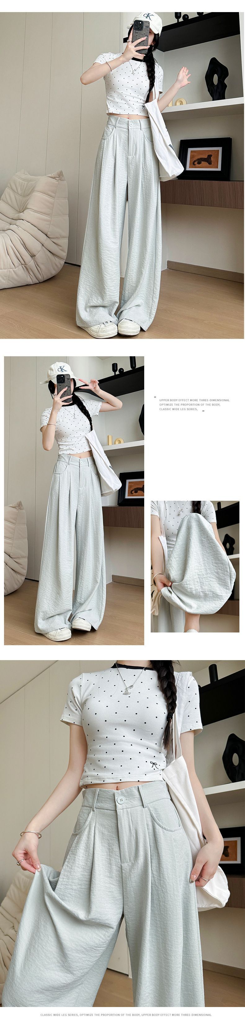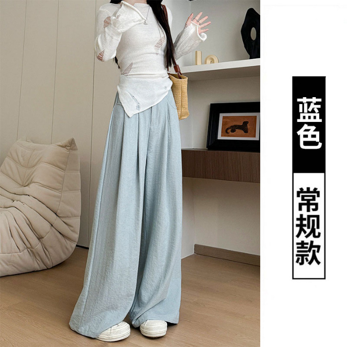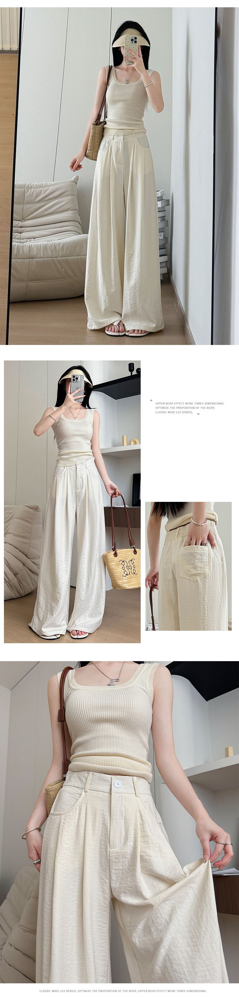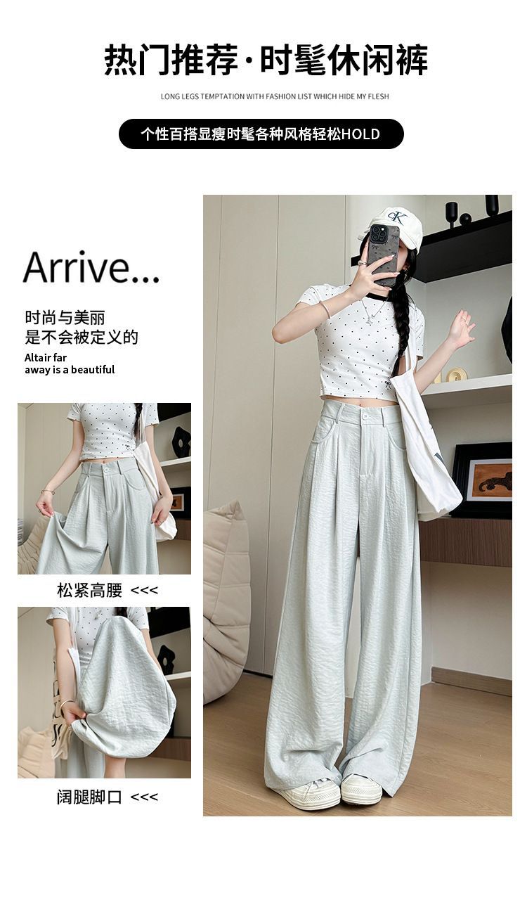 아이스 실크 dape 야마모토 바지 여성 봄 여름 얇은 2025 새로운 한국 스타일 높은 허리 아이보리 세트 넓은 다리 바지스토어 가기