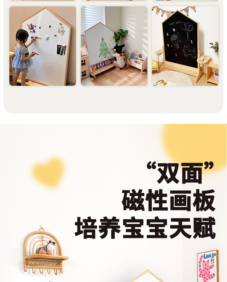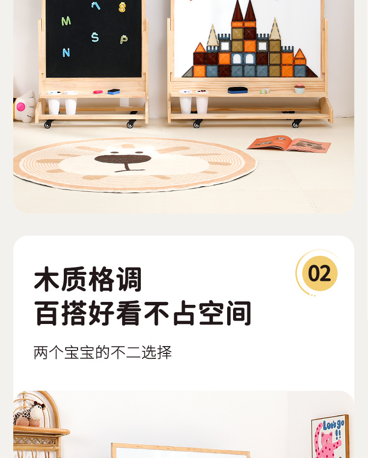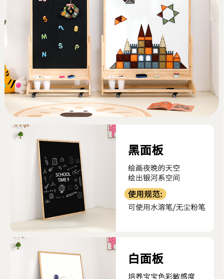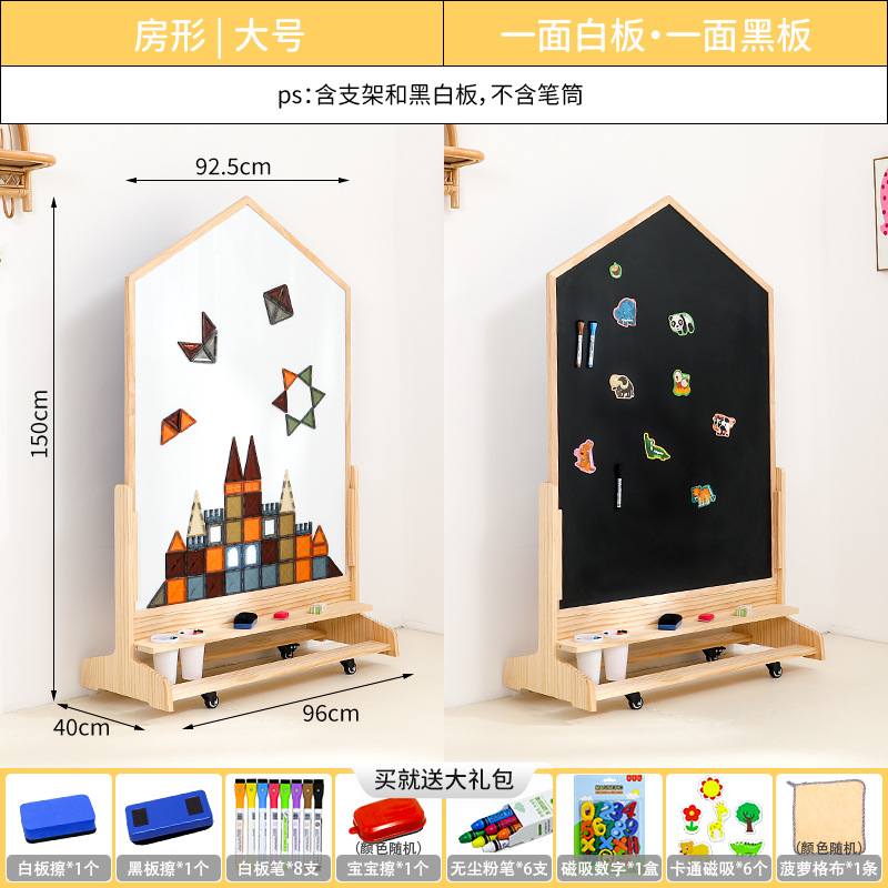 어린이 드로잉 보드 아기 자기 양면 유아 교육 칠판 홈 솔리드 우드 움직일 수있는 투인원 그림 낙서 보드스토어 가기