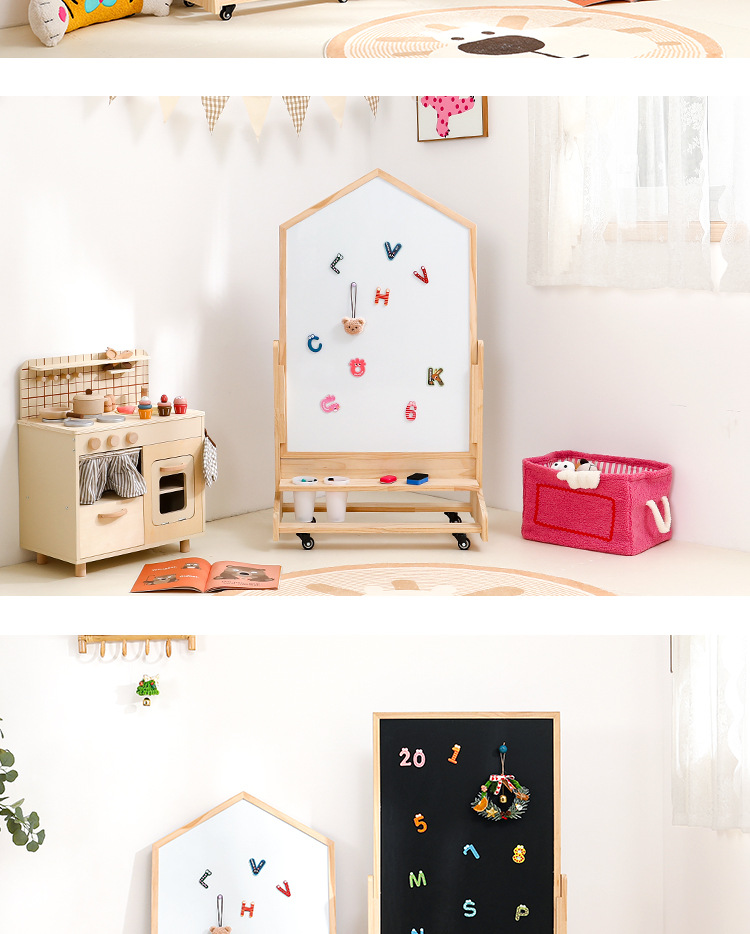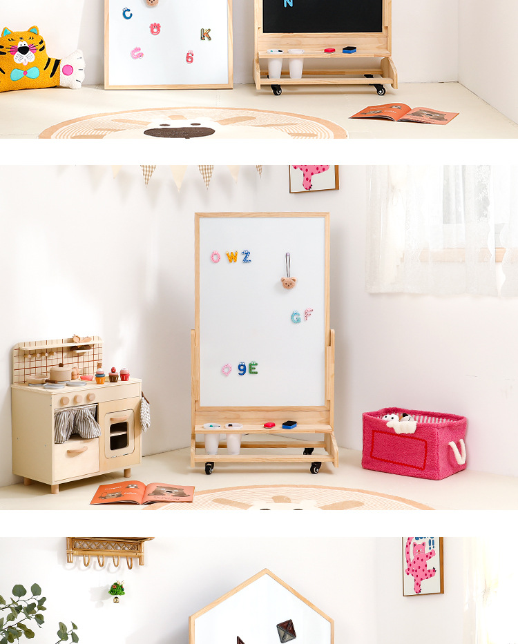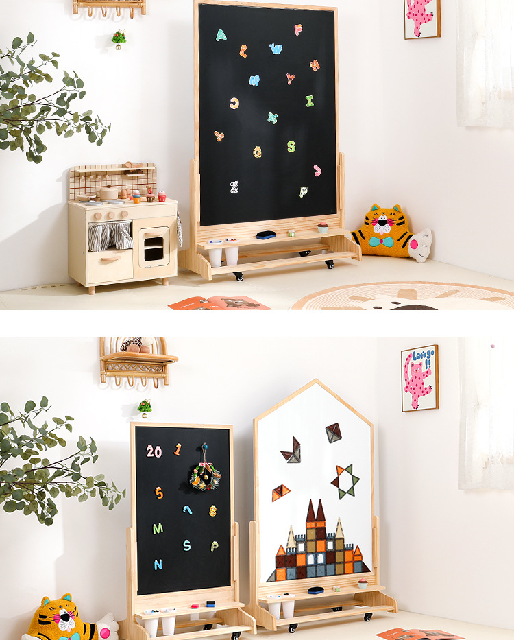 어린이 드로잉 보드 아기 자기 양면 유아 교육 칠판 홈 솔리드 우드 움직일 수있는 투인원 그림 낙서 보드