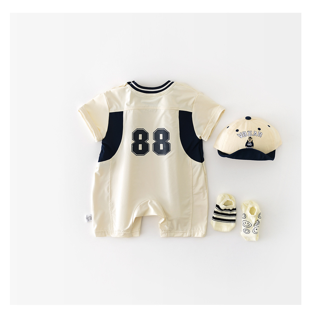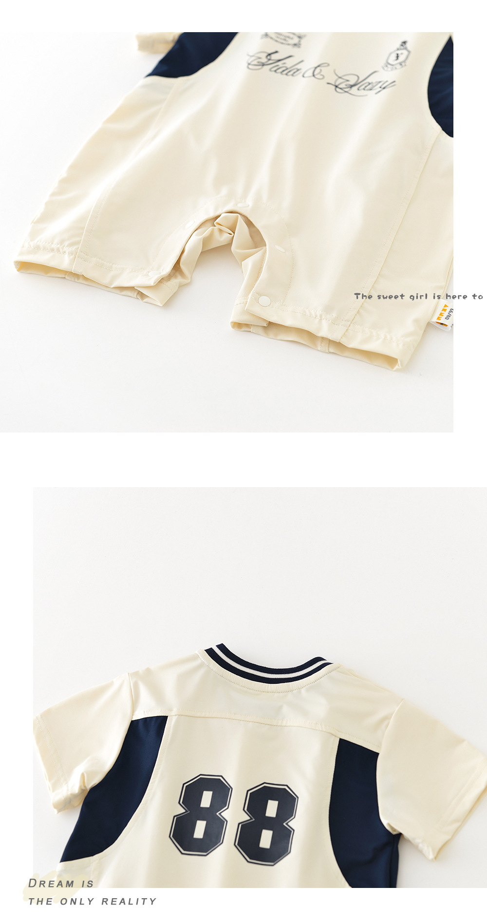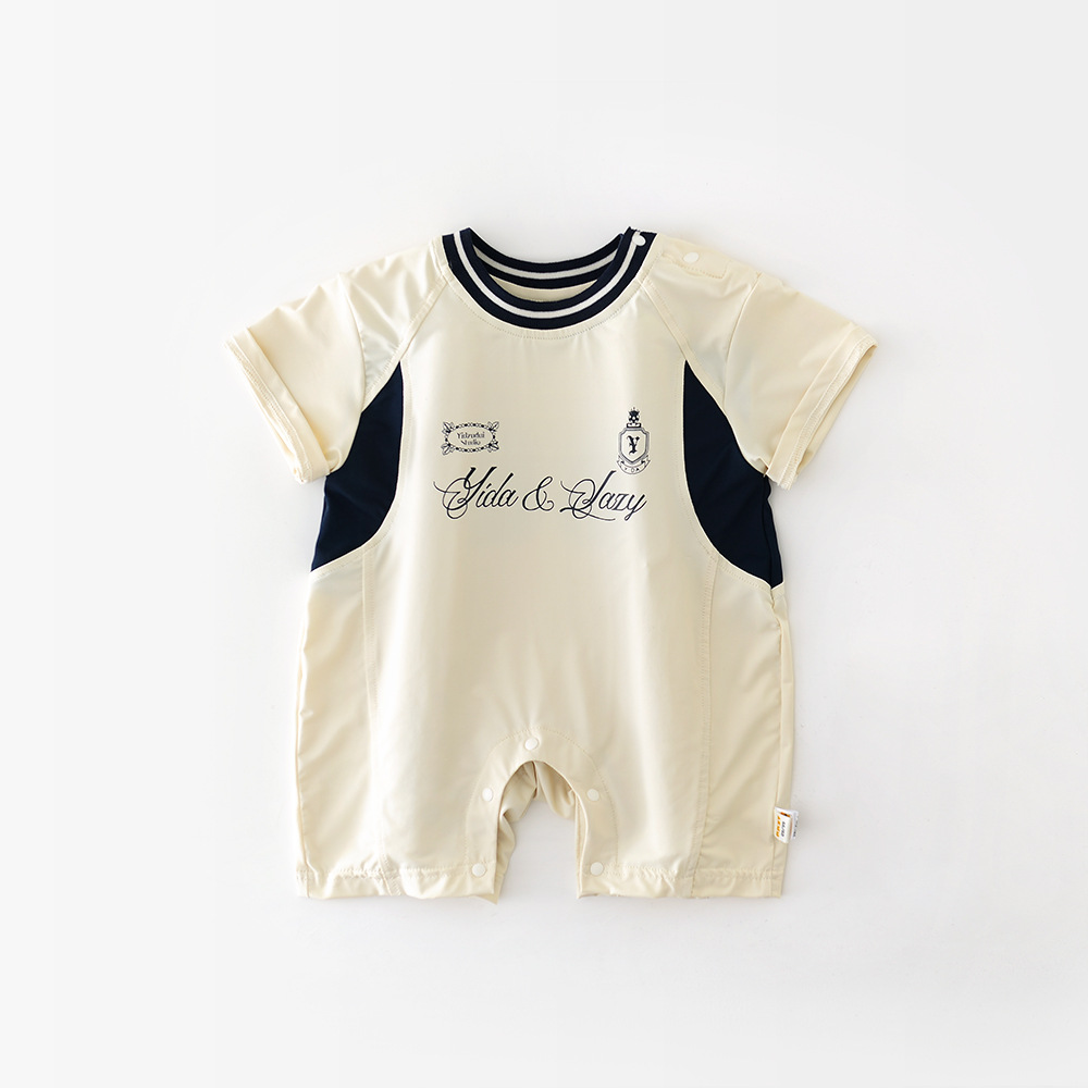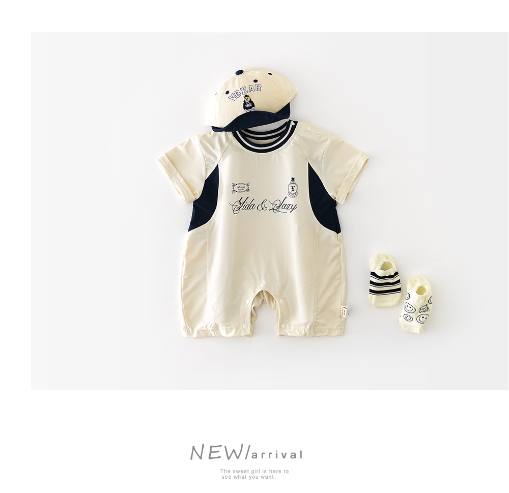 2025秋季新款儿童卡通连身衣 新生儿条纹脱卸领长袖爬服53566