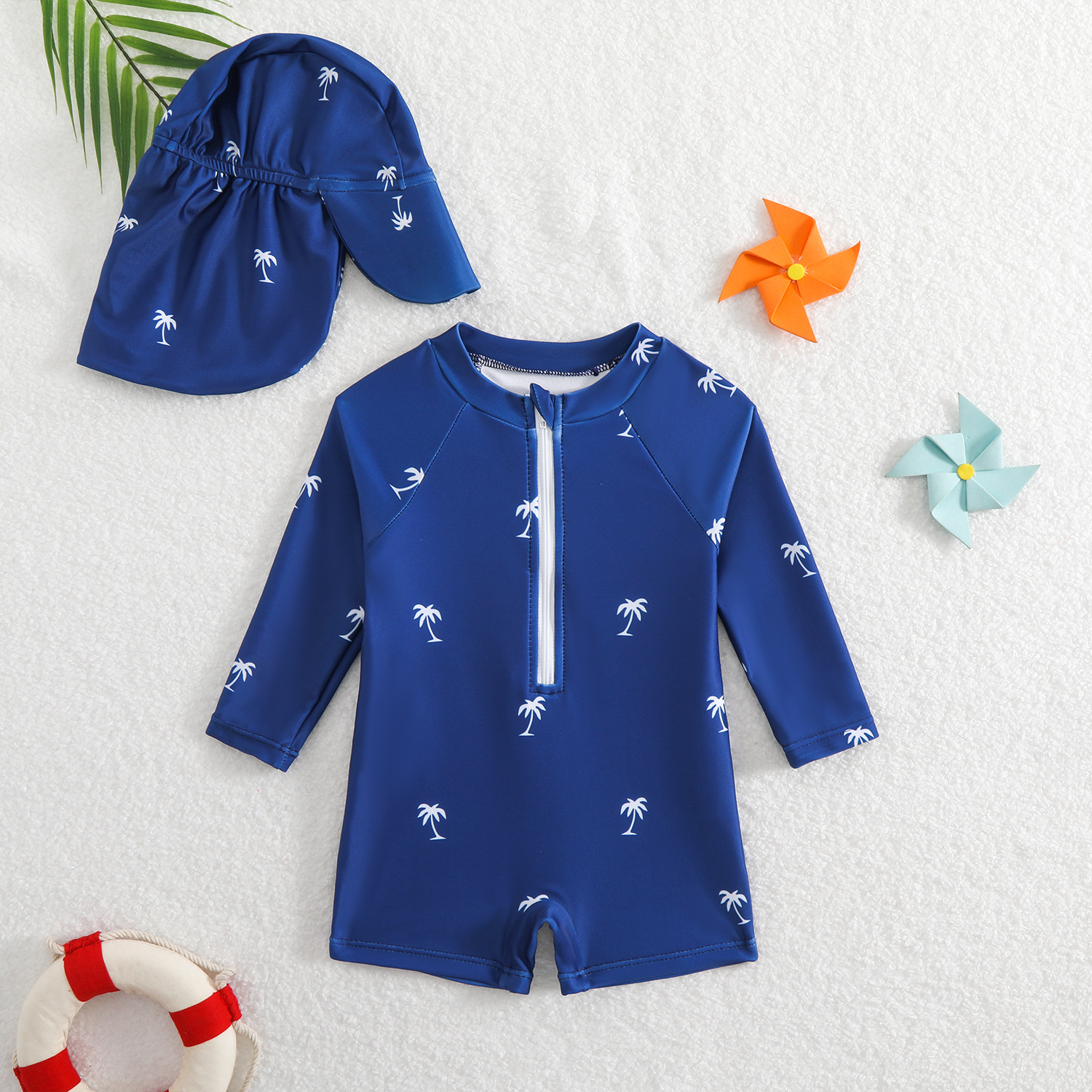 • 긴팔수영복+수영모-블루