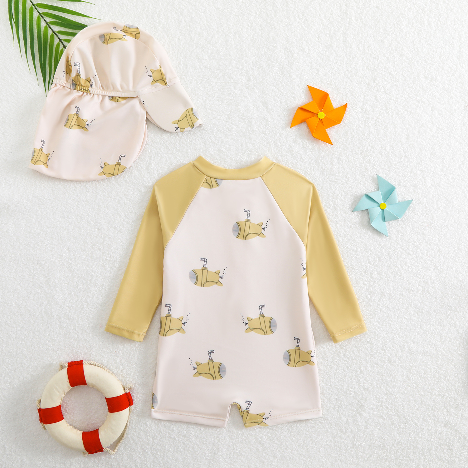 • 긴팔수영복+수영모-노란색