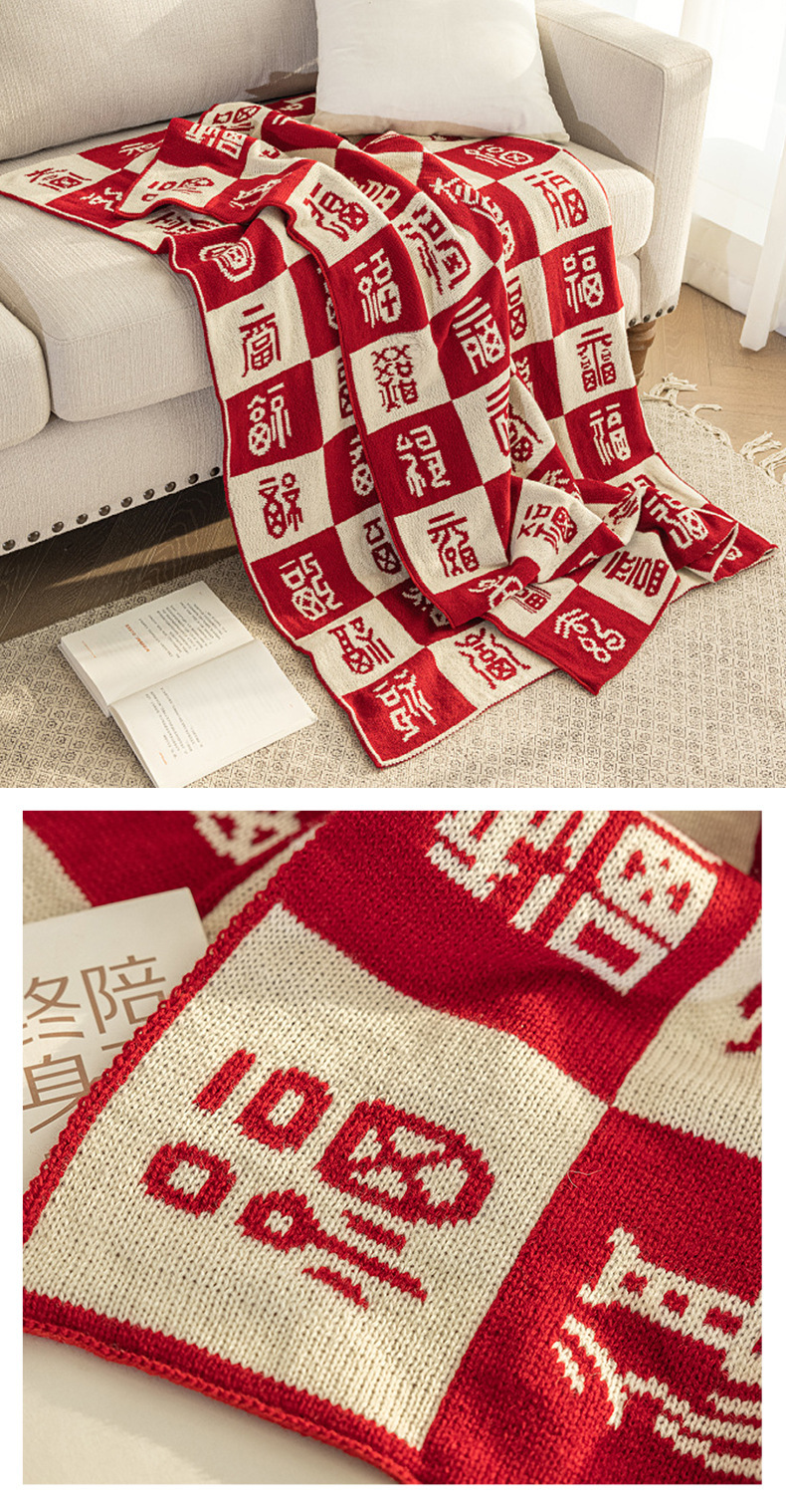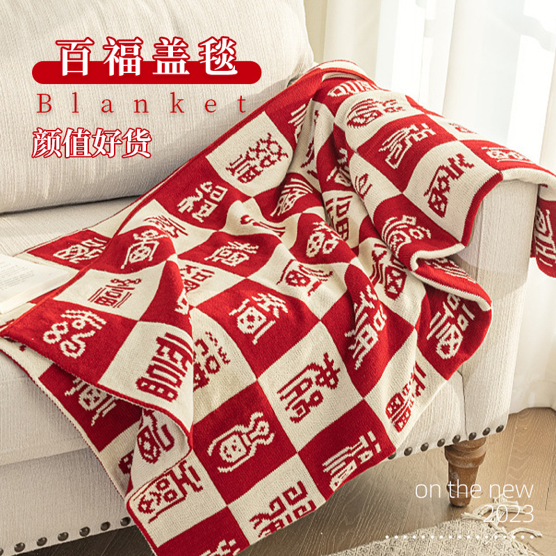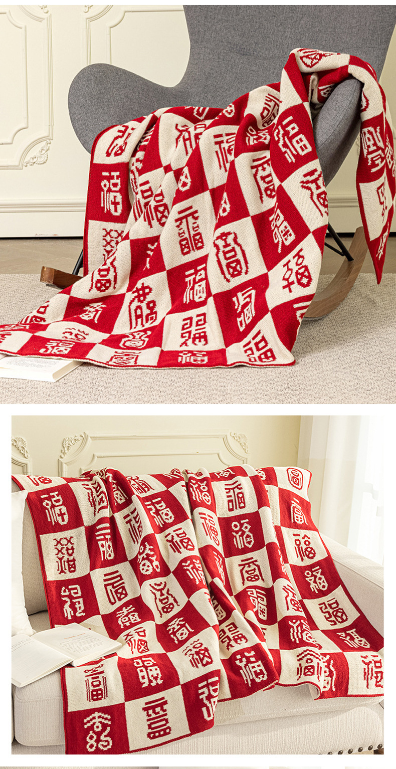 가을, 겨울 레드 푸르 커버 담요 휴일 선물 집들이 소파 사무실 낮잠 에어컨 담요 침실 중국 스타일 결혼식