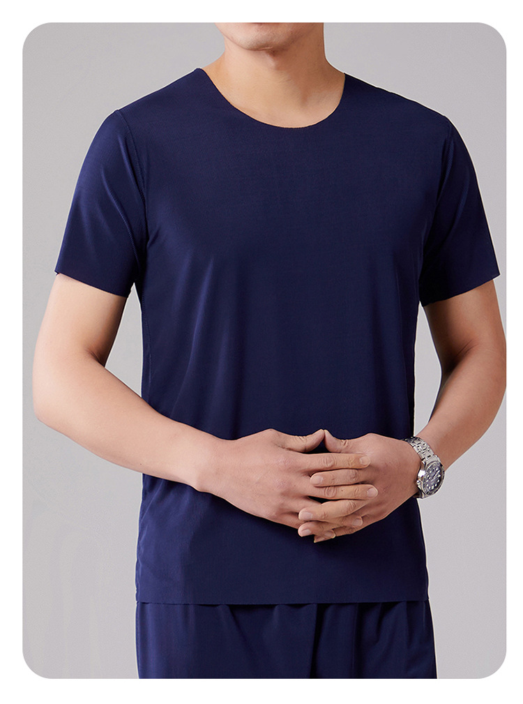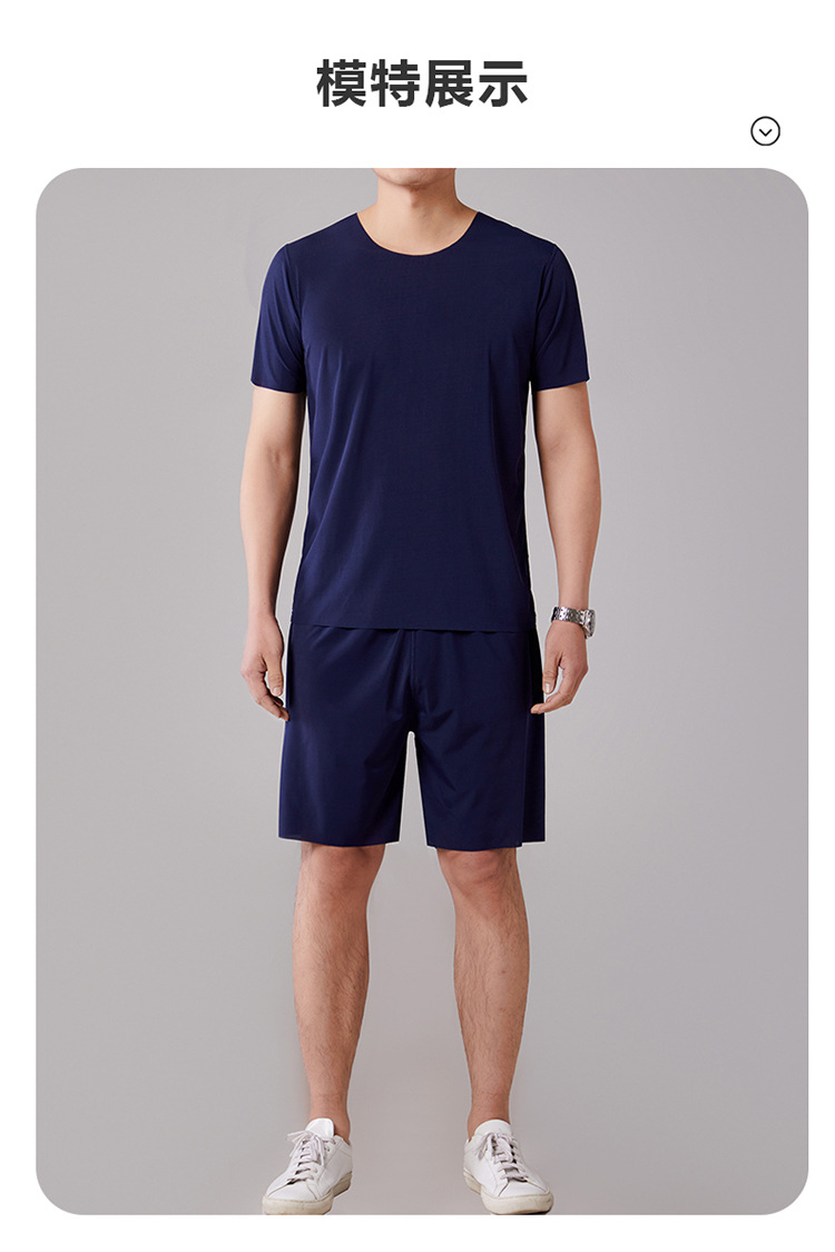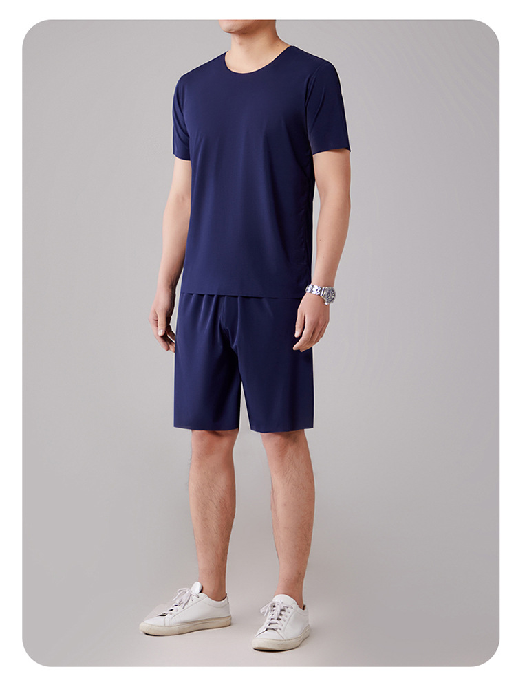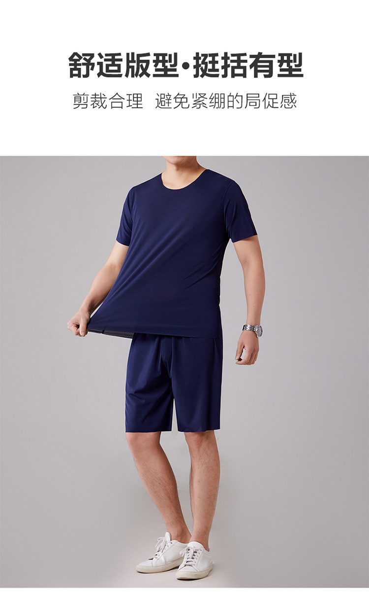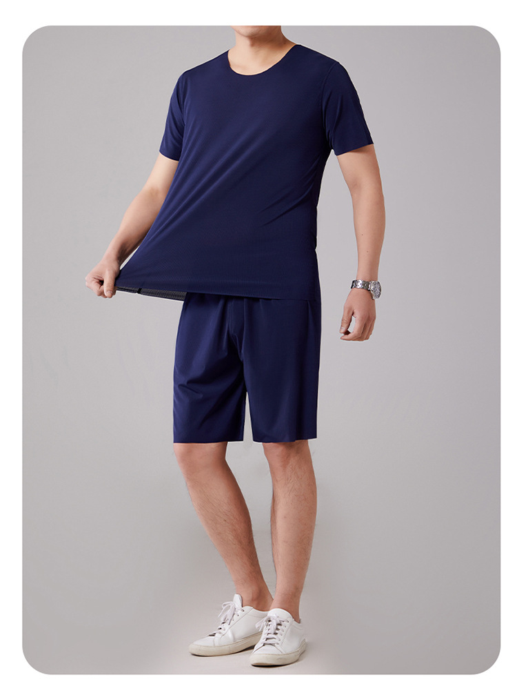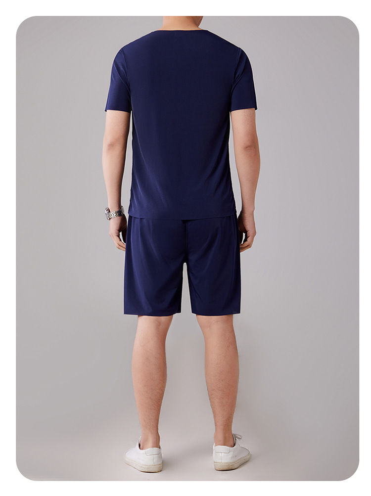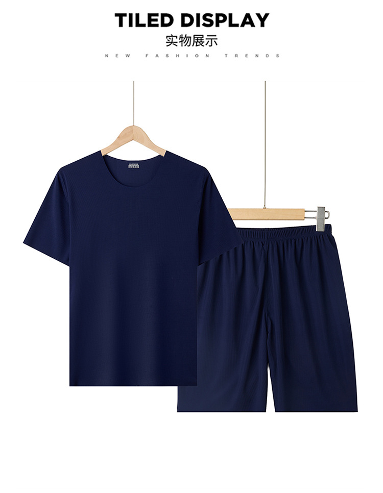 2025 새로운 잠옷 아이스 실크 시원한 느낌 홈 의류 남성 여름 모달 얇은 나사산 짧은 소매는 외부에서 착용 할 수 있습니다.