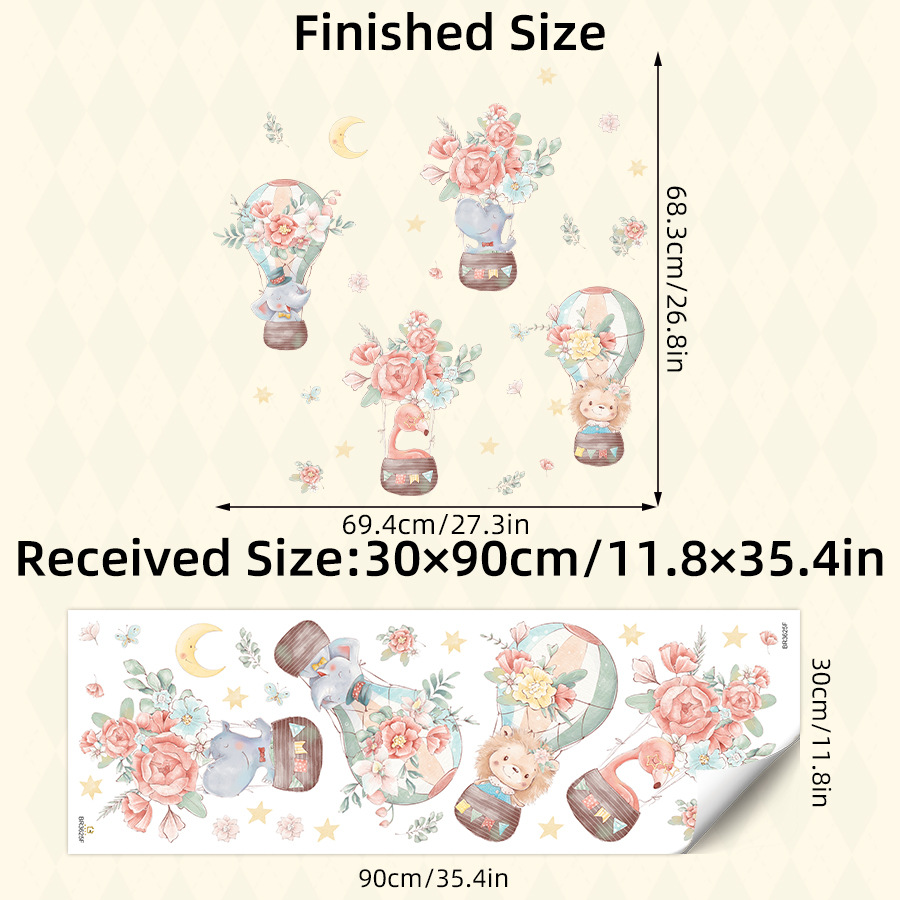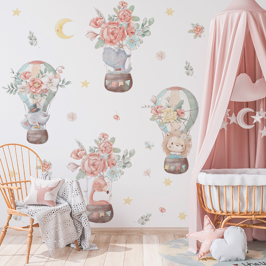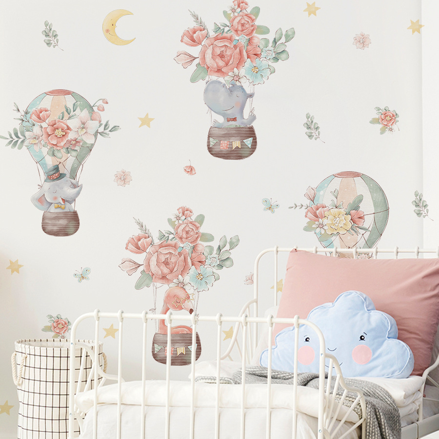 BR3625F 꽃 뜨거운 공기 풍선 만화 작은 동물 자기 접착제 애니메이션 벽 스티커 침실 어린이 방 장식 스티커스토어 가기