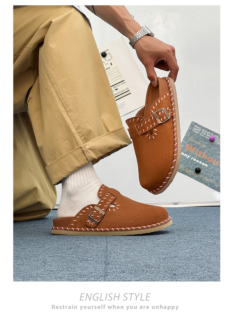 3695 여성용 남성용 봄과 가을 신형 레트로 슬립 온 게으른 Muqin 플랫 슈즈와 Baotou Bucken 하프 슬리퍼
