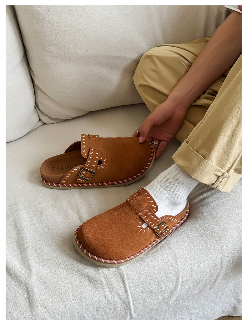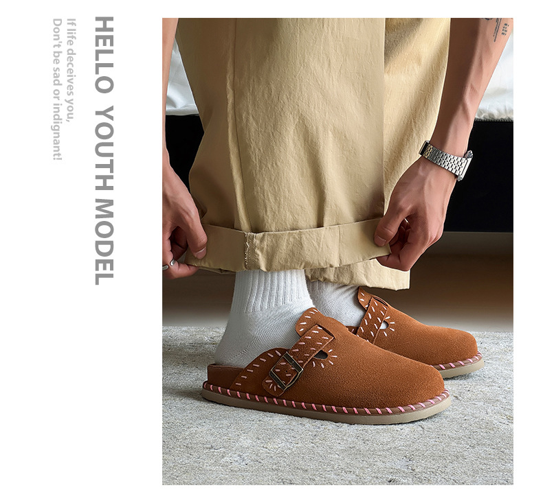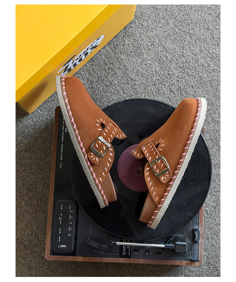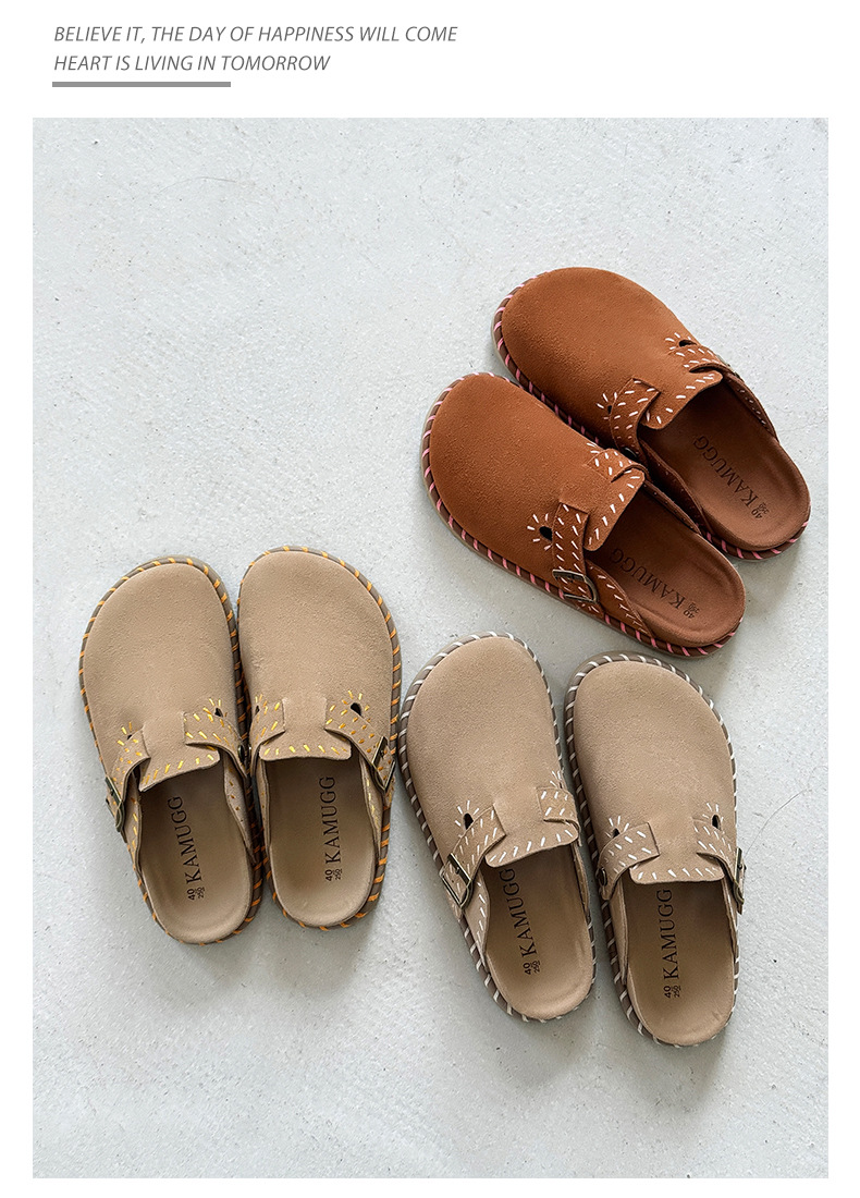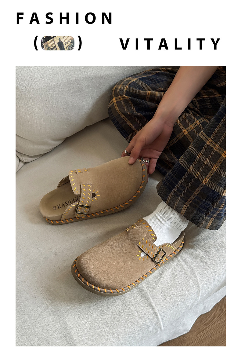 3695 여성용 남성용 봄과 가을 신형 레트로 슬립 온 게으른 Muqin 플랫 슈즈와 Baotou Bucken 하프 슬리퍼스토어 가기