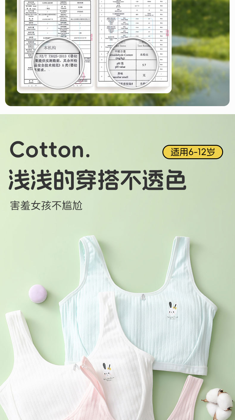 여아 속옷, 초등학생 발달기, 돌출 방지, 6~12세 여아 1단계 브라, 순면 아동 속옷