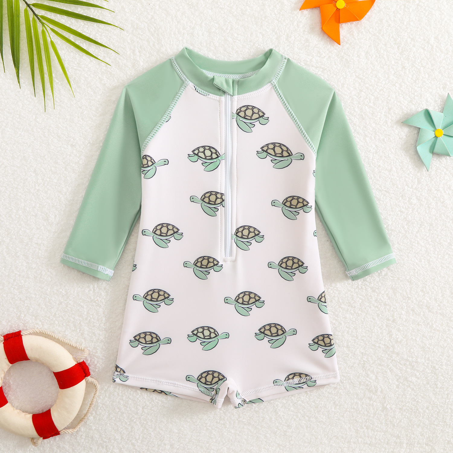 2025 새로운 인터넷 축하 크로스 국경 어린이 수영복 소년의 여름 긴팔 수영복 아기 수영복 온천 수영복
