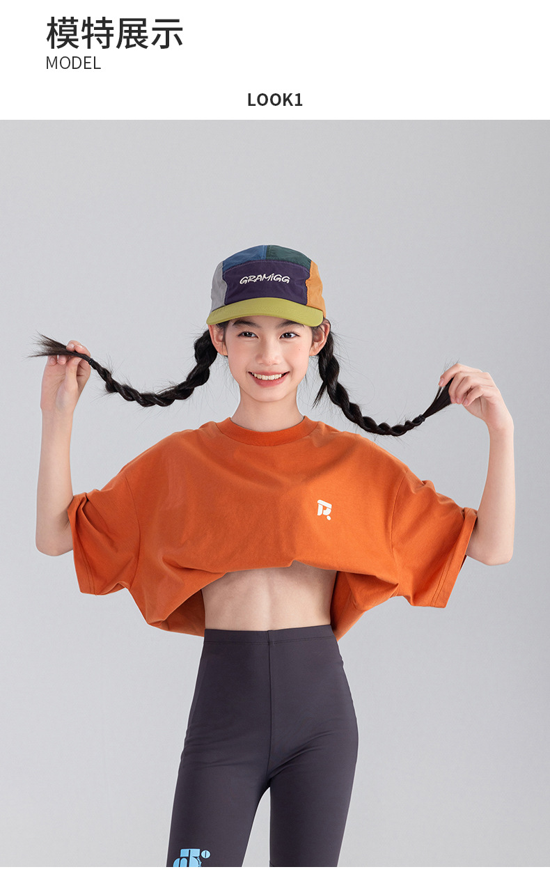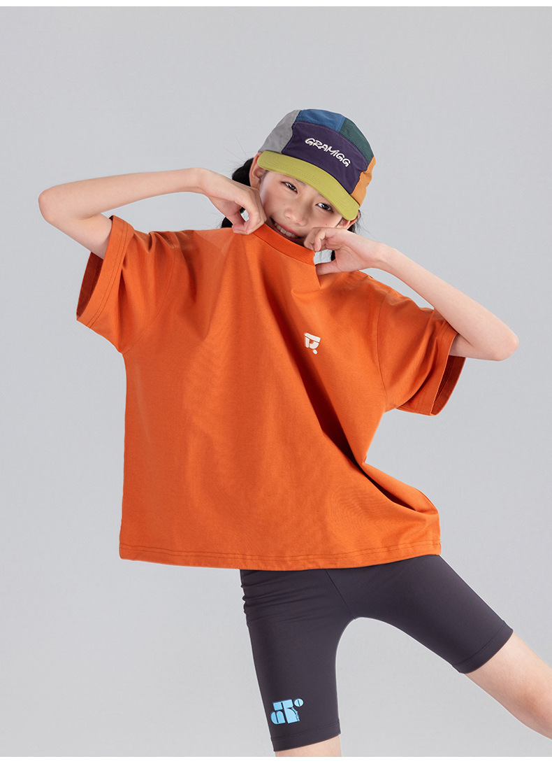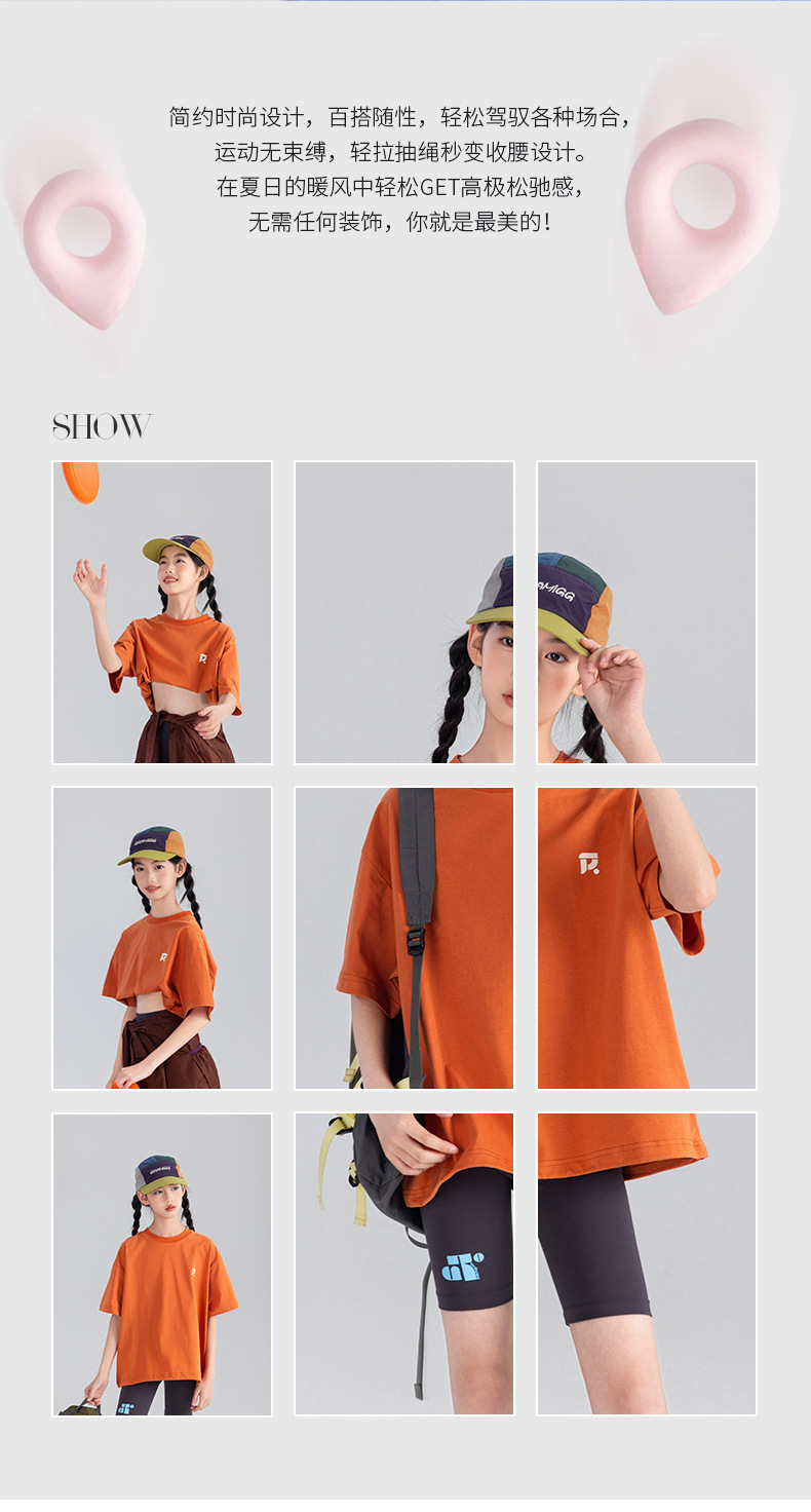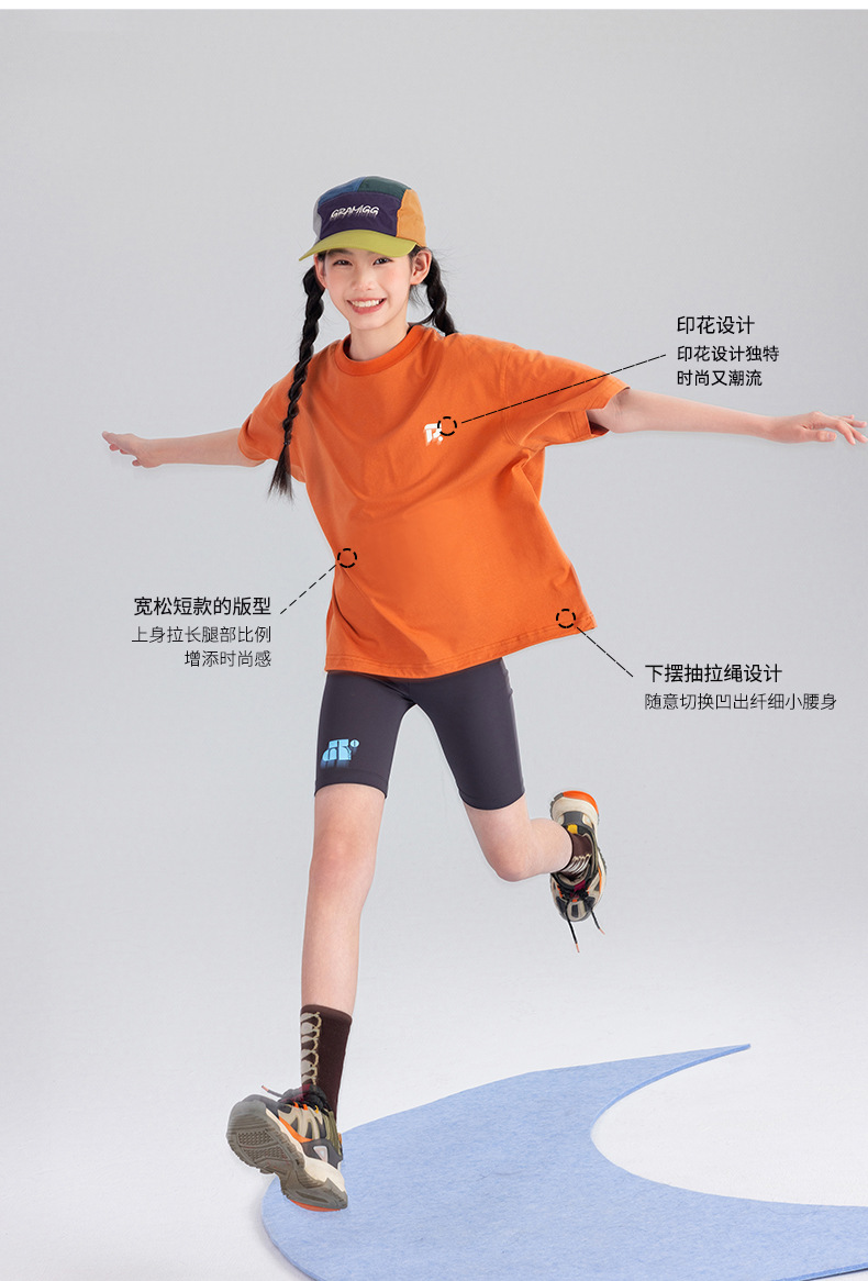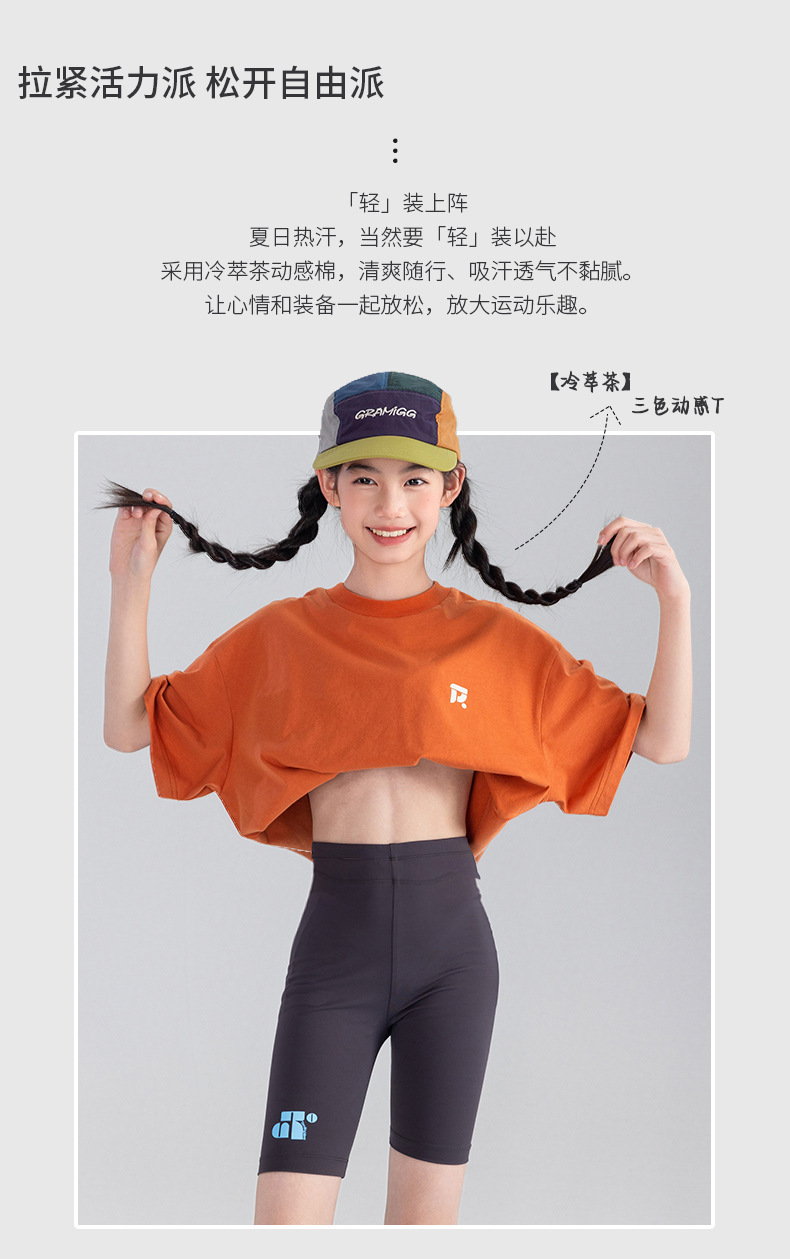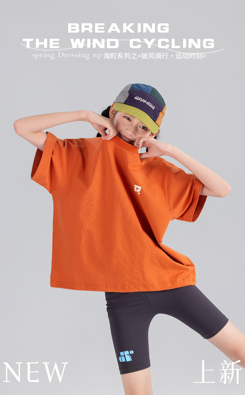 Amoy Town [Lengsui Tea] 소녀 드로우 스트링 다이나믹 티셔츠 봄 · 여름 새로운 중 · 대형 어린이 레저 스포츠베이스 셔츠