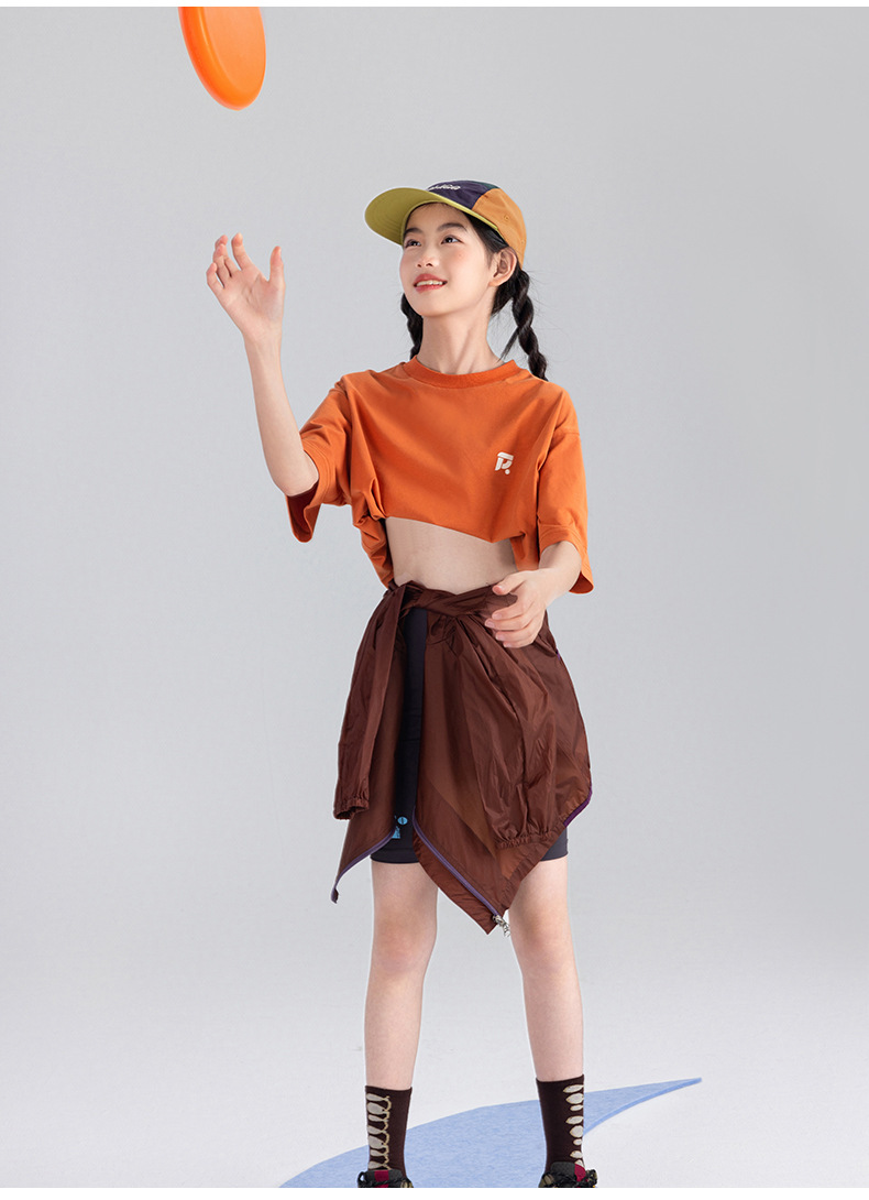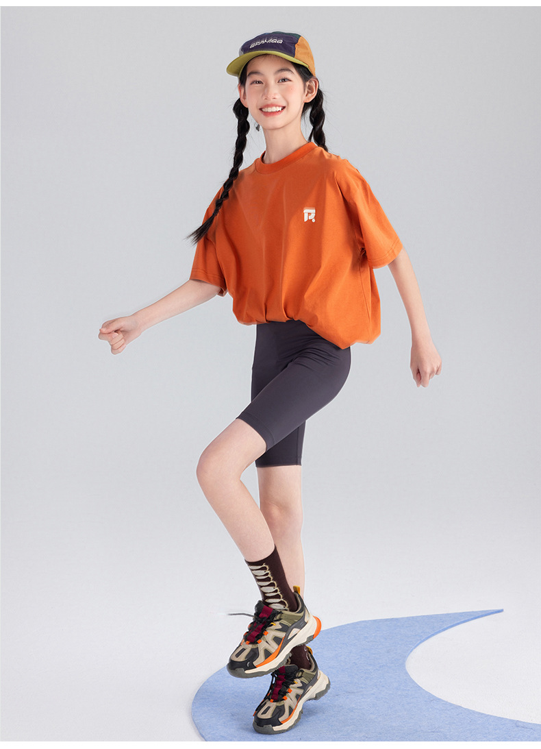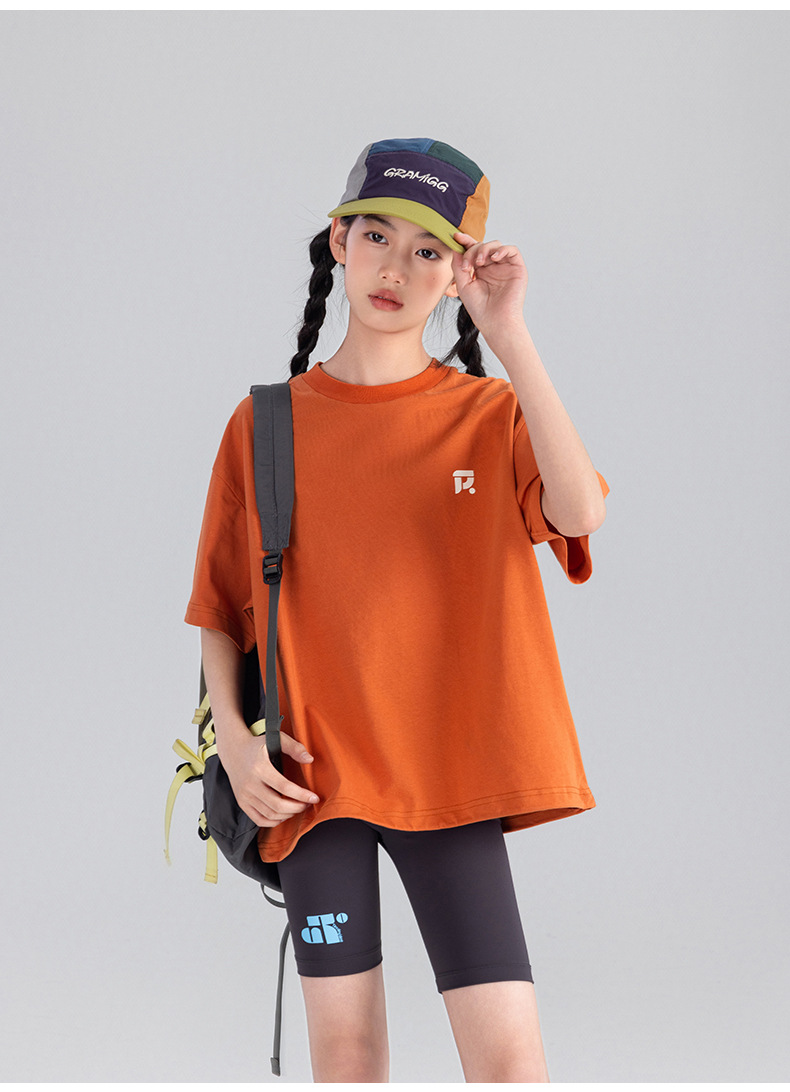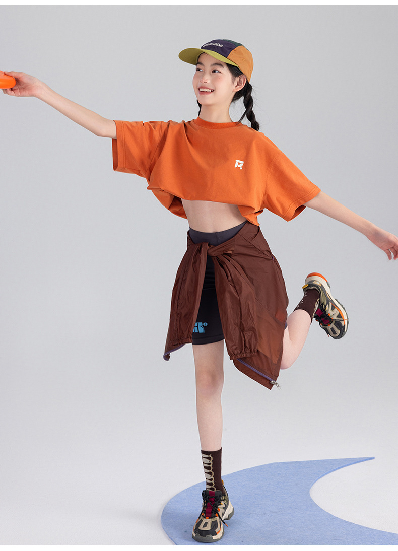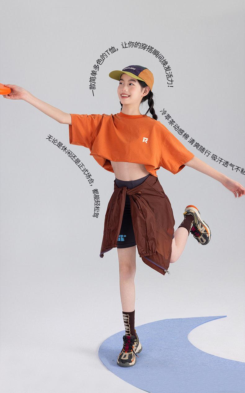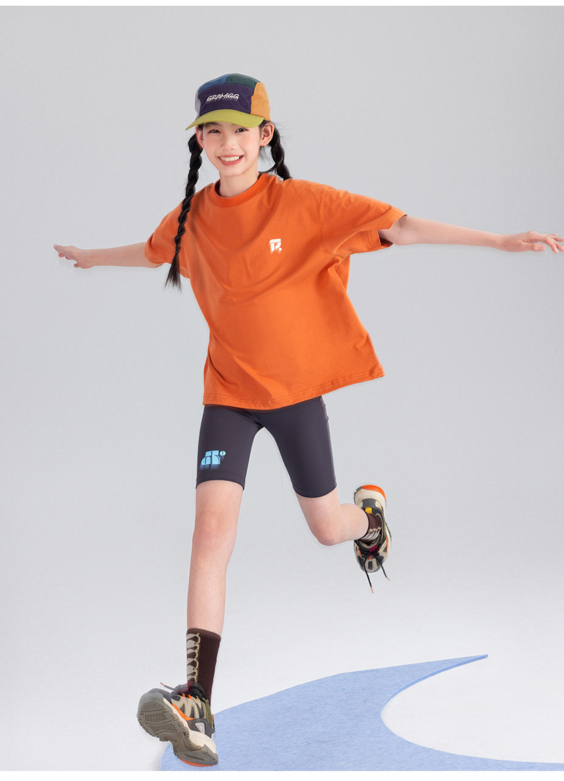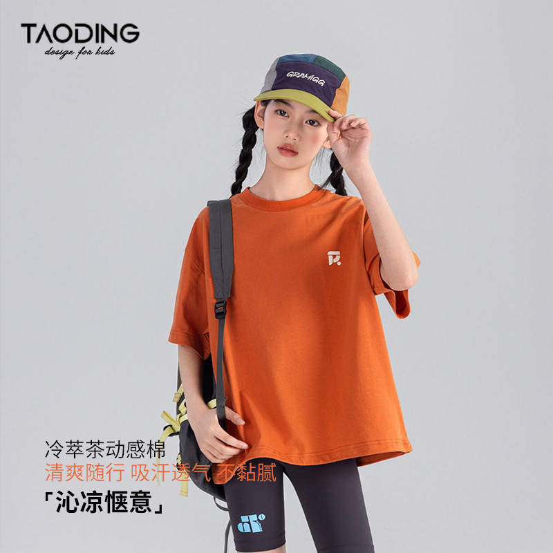 Amoy Town [Lengsui Tea] 소녀 드로우 스트링 다이나믹 티셔츠 봄 · 여름 새로운 중 · 대형 어린이 레저 스포츠베이스 셔츠