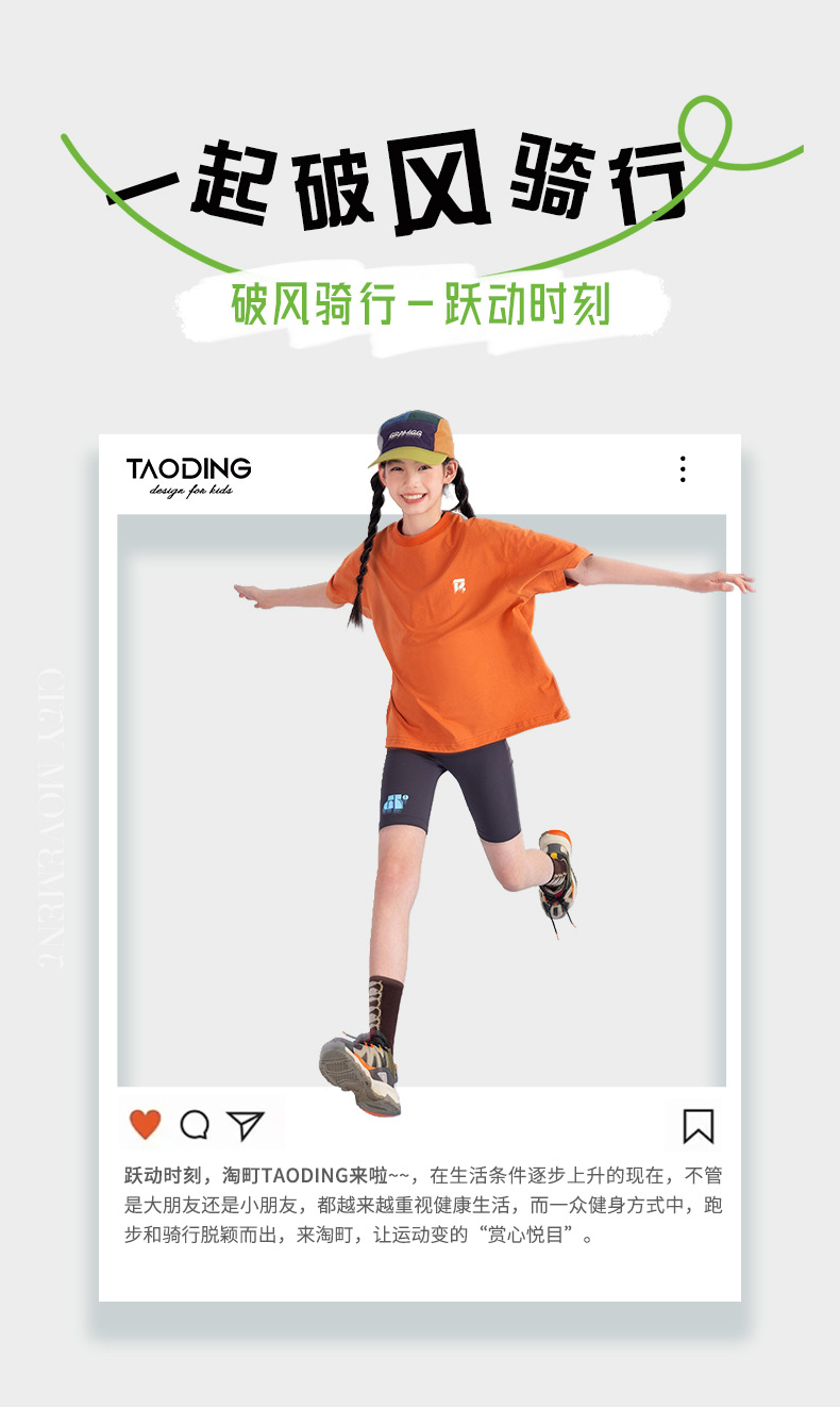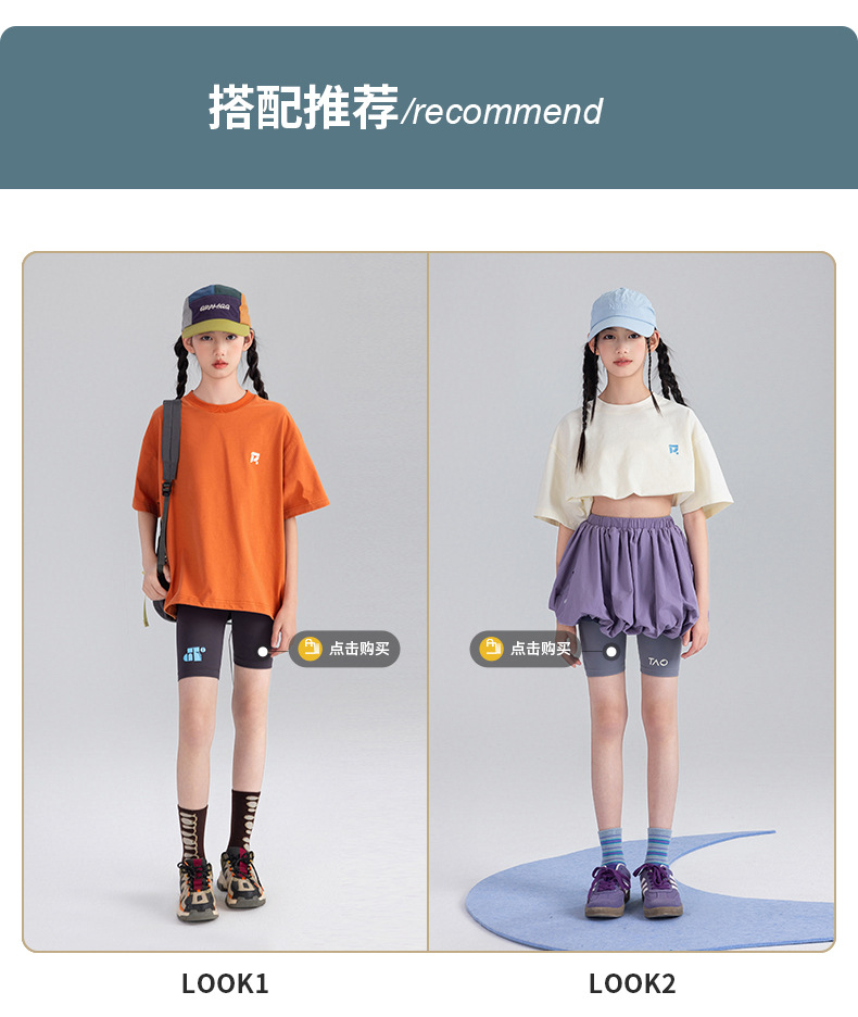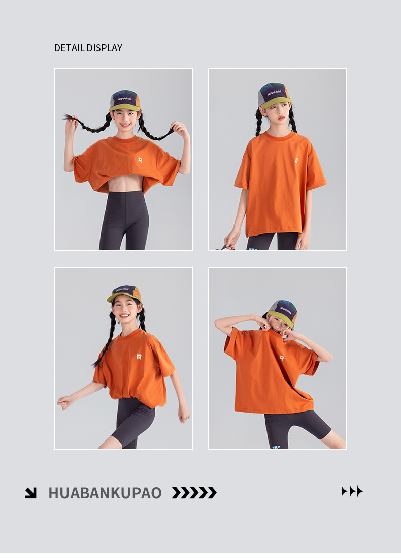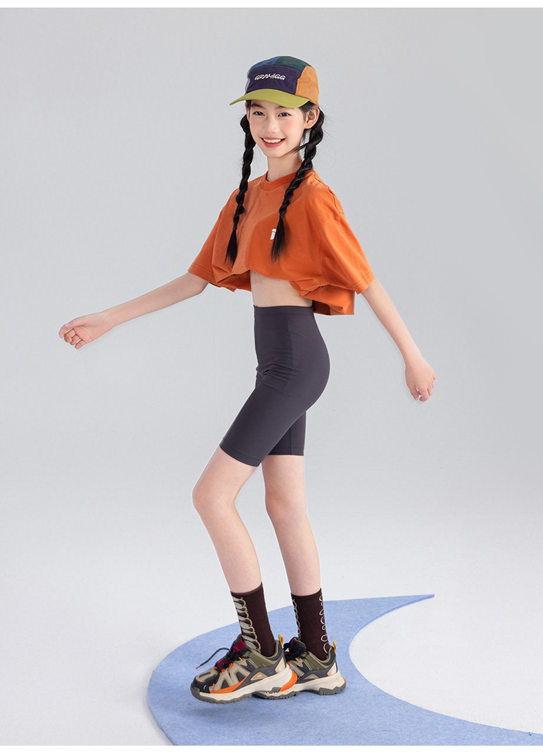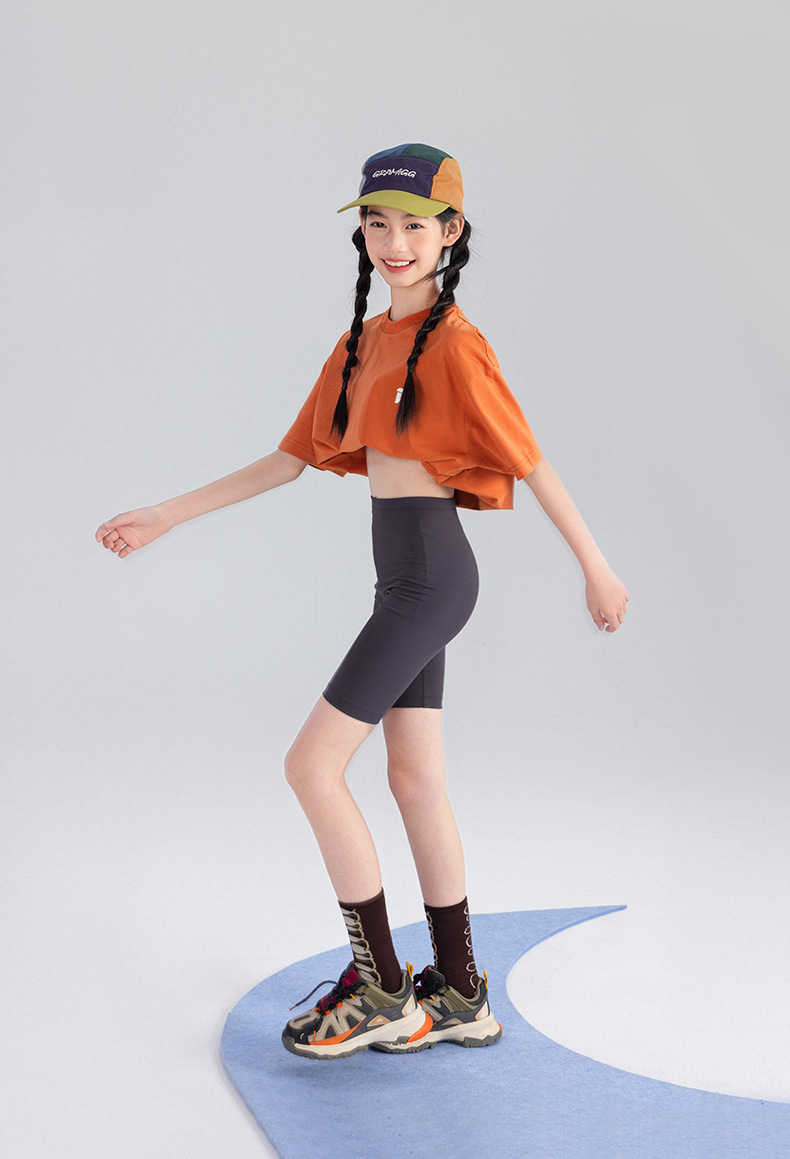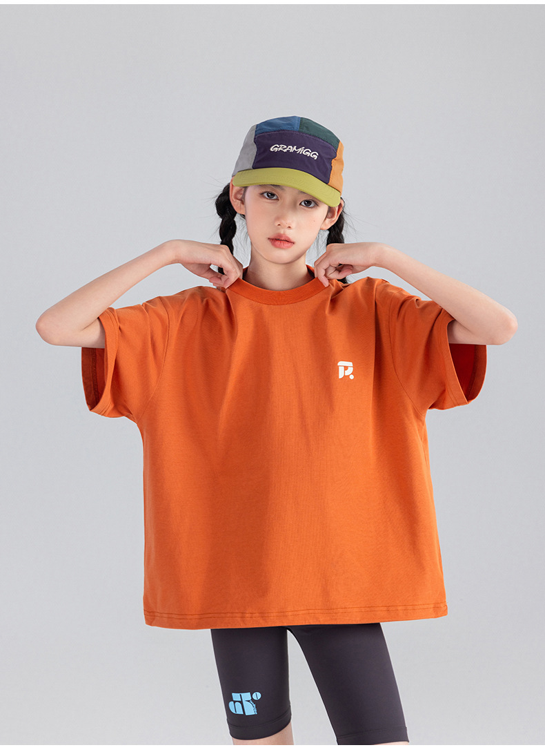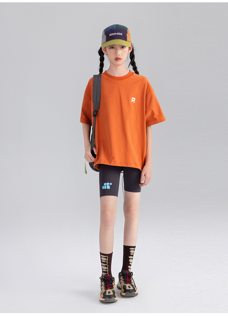 Amoy Town [Lengsui Tea] 소녀 드로우 스트링 다이나믹 티셔츠 봄 · 여름 새로운 중 · 대형 어린이 레저 스포츠베이스 셔츠