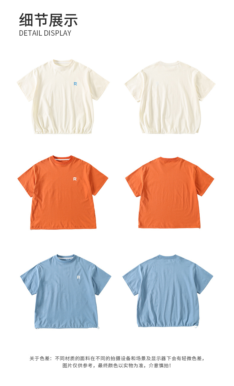 Amoy Town [Lengsui Tea] 소녀 드로우 스트링 다이나믹 티셔츠 봄 · 여름 새로운 중 · 대형 어린이 레저 스포츠베이스 셔츠스토어 가기