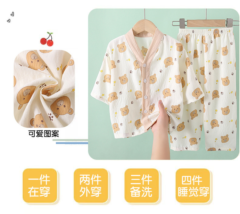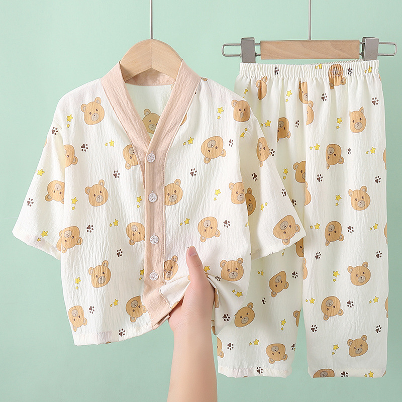 여름 어린이 잠옷 소녀 소년 7 점 소매 구름 면화 소녀 큰 어린이 홈 옷 세트 아기 잠옷