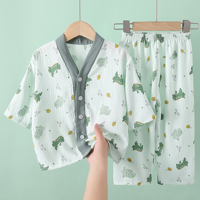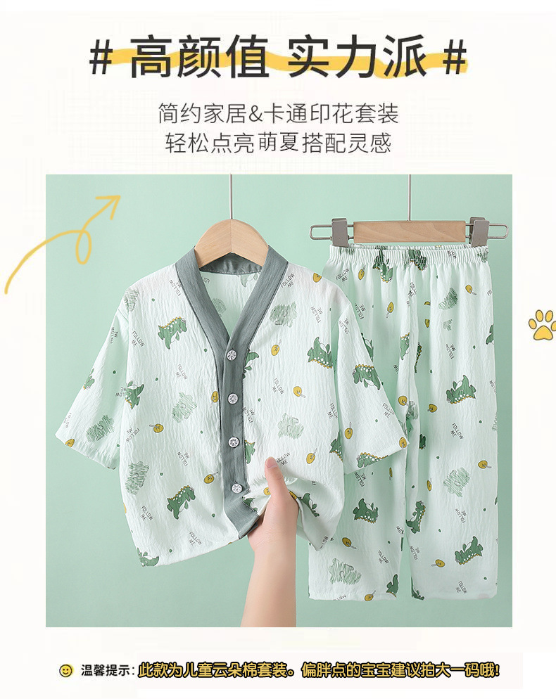 여름 어린이 잠옷 소녀 소년 7 점 소매 구름 면화 소녀 큰 어린이 홈 옷 세트 아기 잠옷스토어 가기