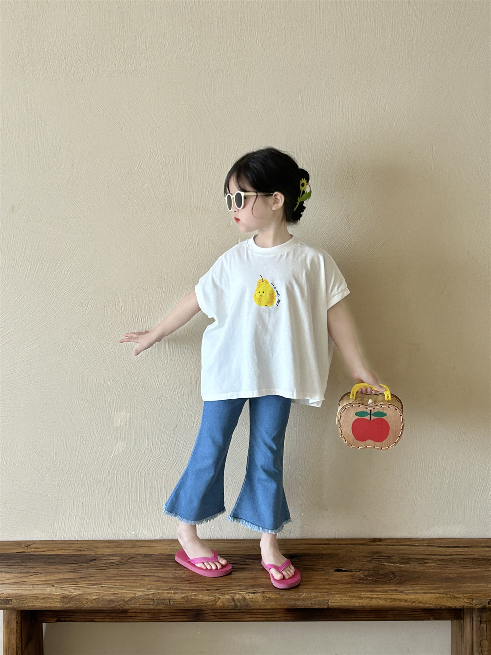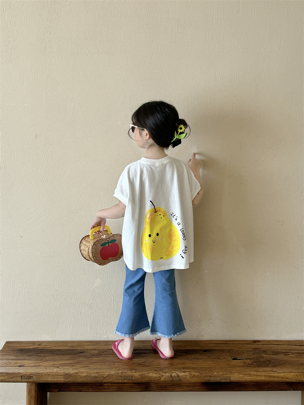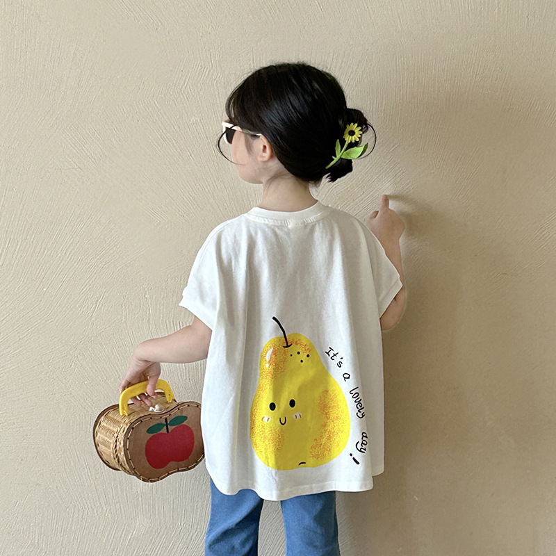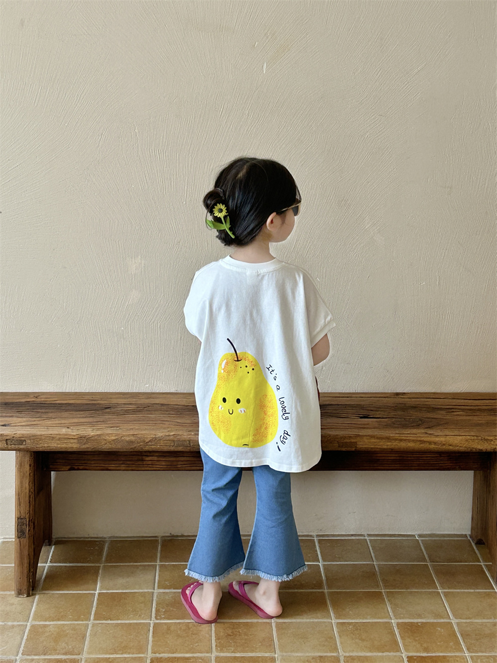 어린이 만화 프린트 반팔 2026 여름 신상 한국 스타일 여아 루즈핏 티셔츠 아기 9부 청바지스토어 가기