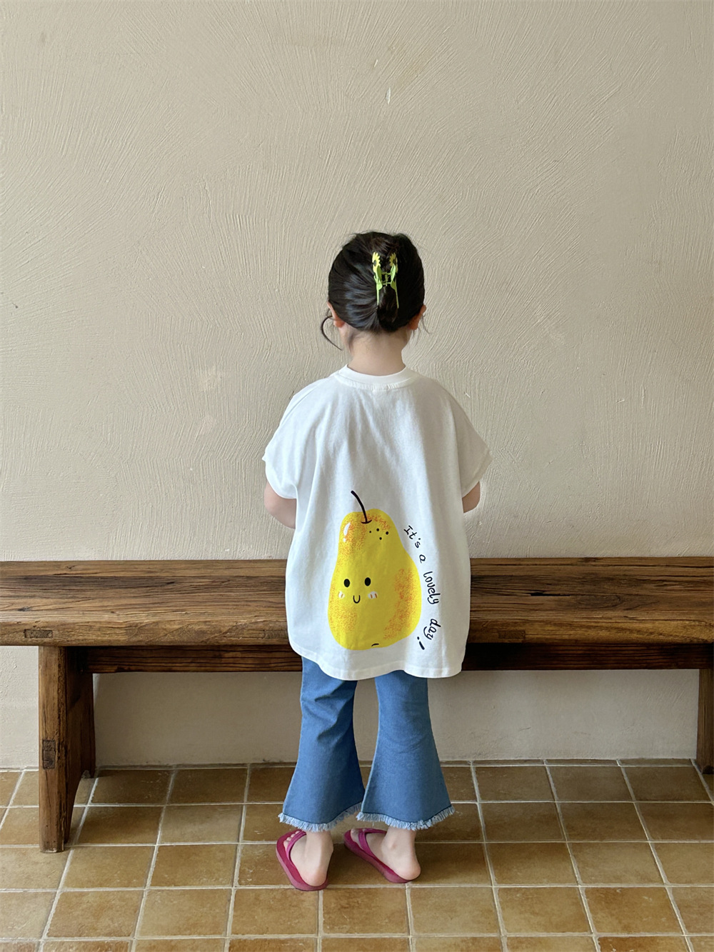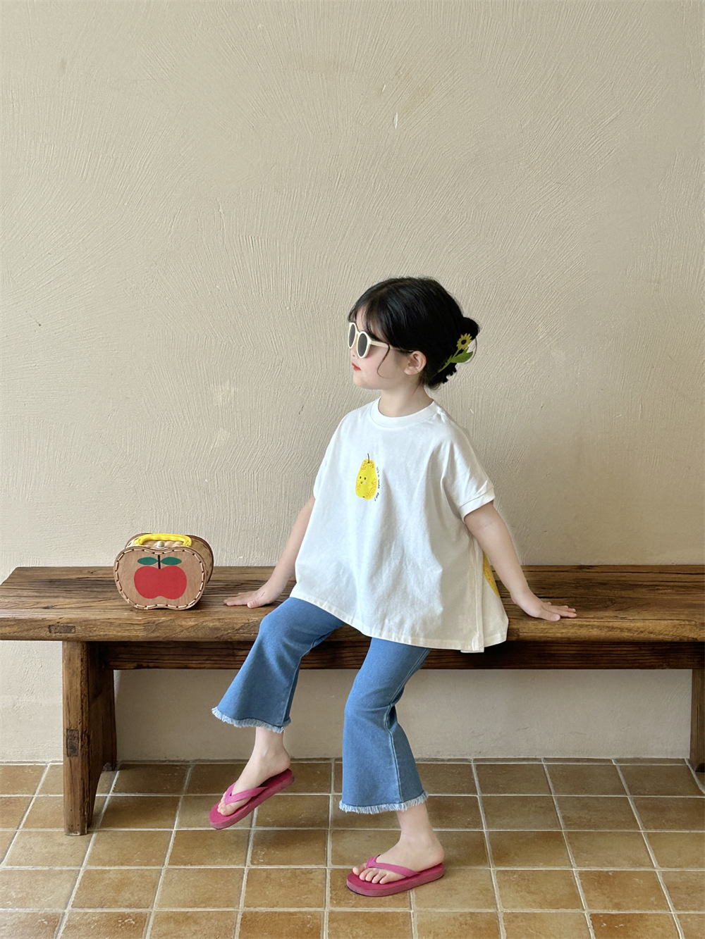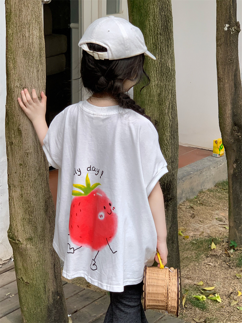 어린이 만화 프린트 반팔 2026 여름 신상 한국 스타일 여아 루즈핏 티셔츠 아기 9부 청바지스토어 가기
