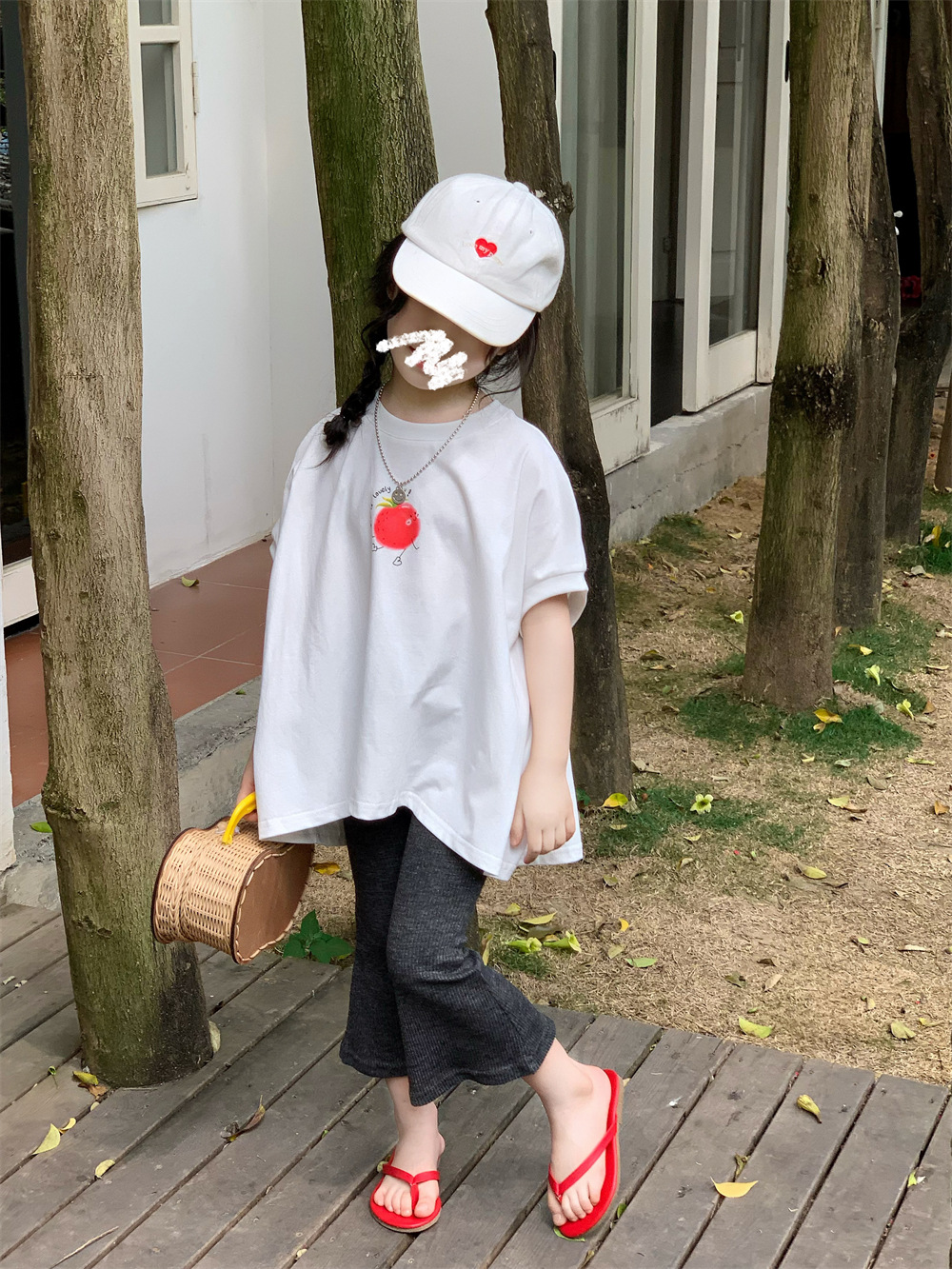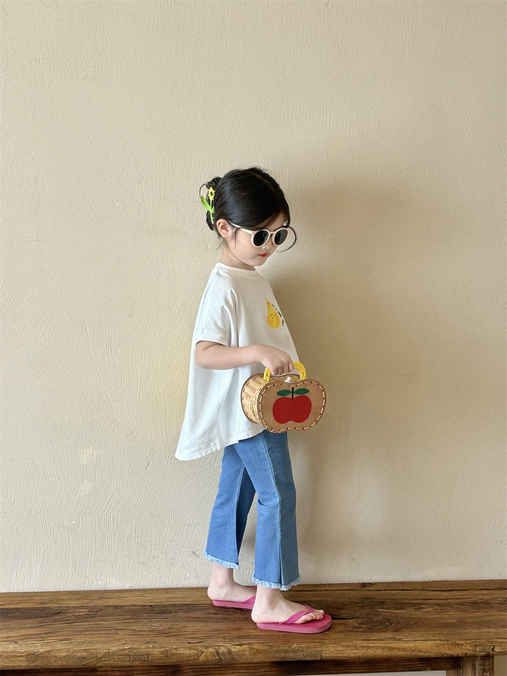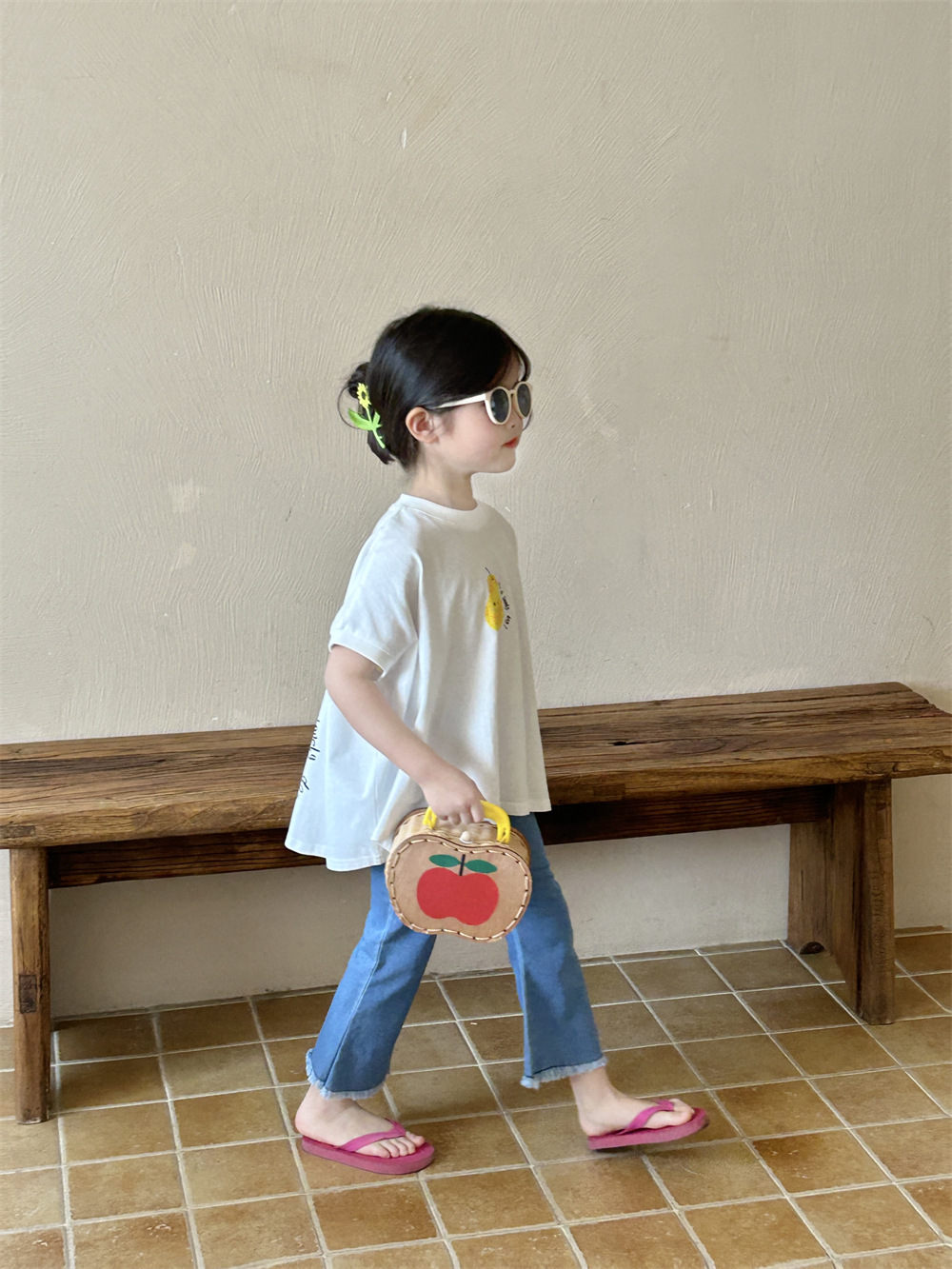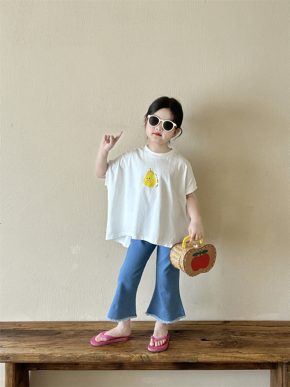 어린이 만화 프린트 반팔 2026 여름 신상 한국 스타일 여아 루즈핏 티셔츠 아기 9부 청바지스토어 가기