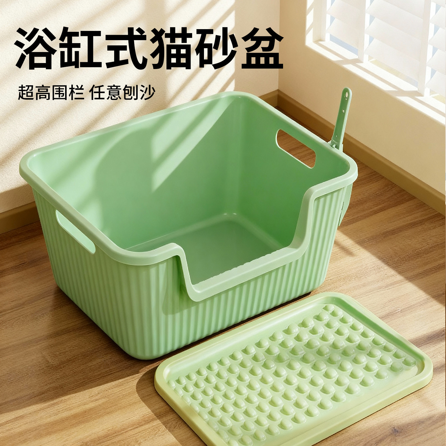 고양이 화장실 초대형 개방형 방수 새끼 고양이 화장실 욕조 반폐쇄형 초대형 고양이 화장실