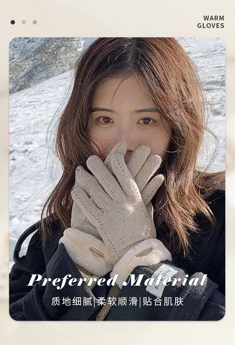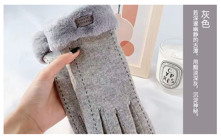 겨울 양모 장갑 캐시미어 여성용 토끼 머리 입 장갑 기모 손가락 터치 스크린 캐시미어 학생 따뜻한 장갑을 타고