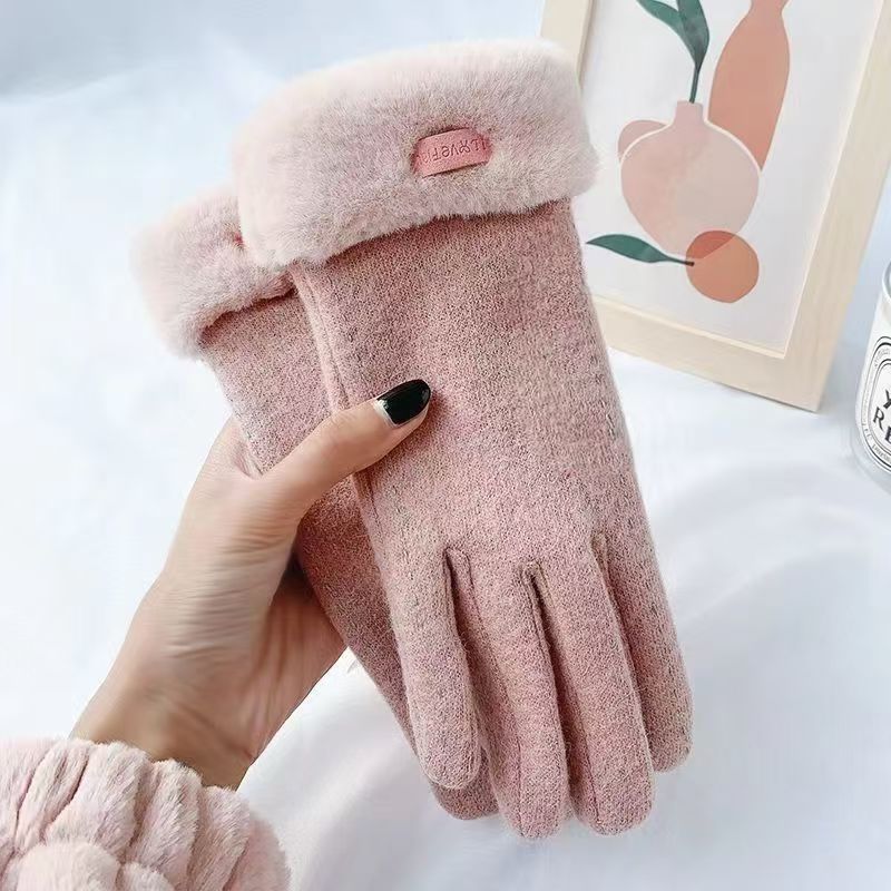 겨울 양모 장갑 캐시미어 여성용 토끼 머리 입 장갑 기모 손가락 터치 스크린 캐시미어 학생 따뜻한 장갑을 타고스토어 가기