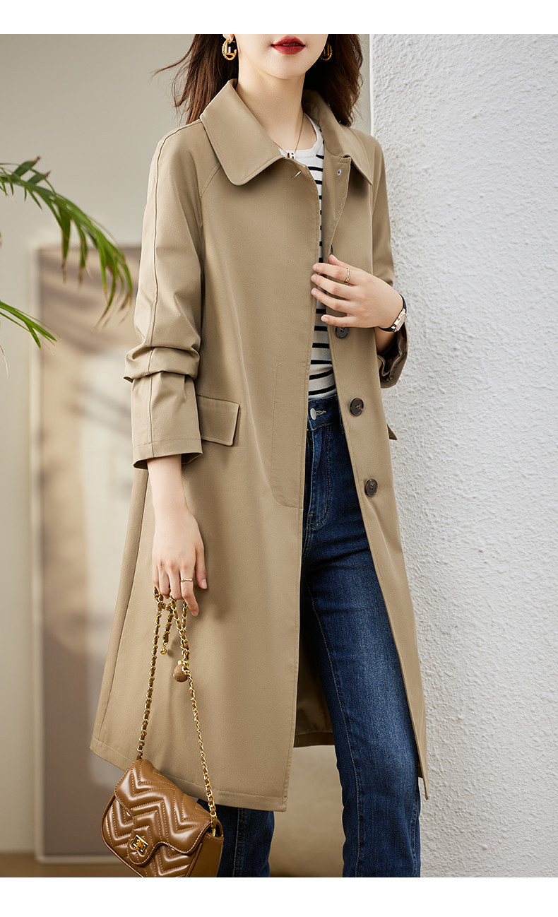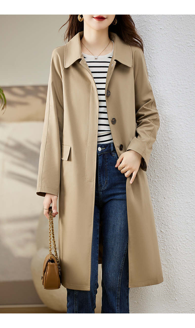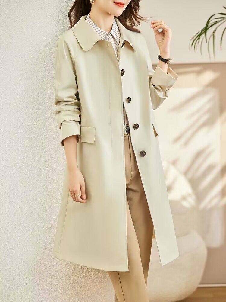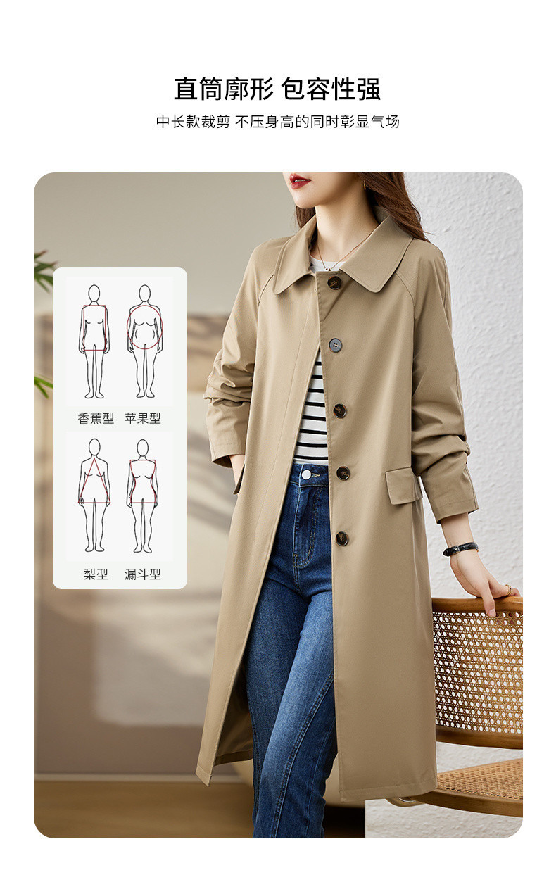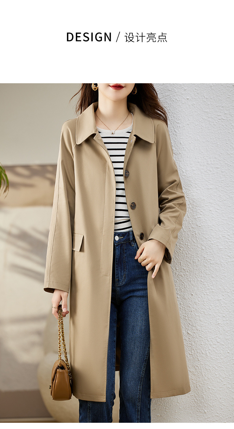 A6C [천 포함] 높은 윈드 브레이커 여성 중간 길이 2025 봄과 가을 새로운 캐주얼 다재다능한 느슨한 슬리밍 외관