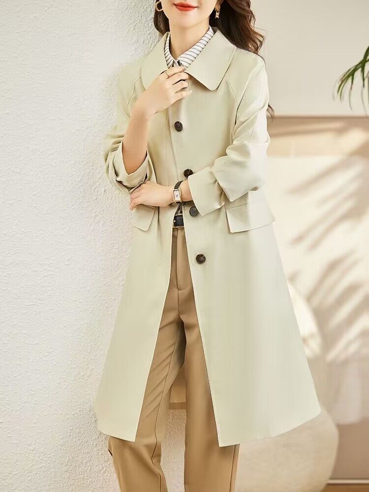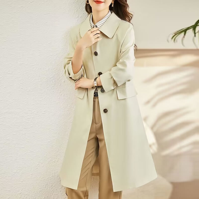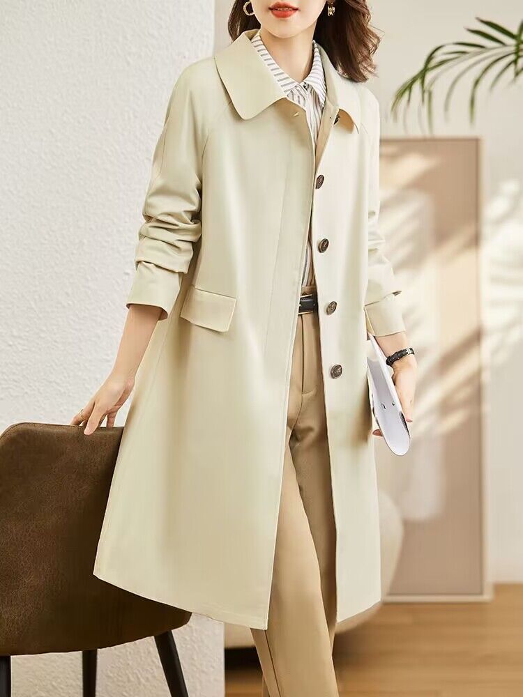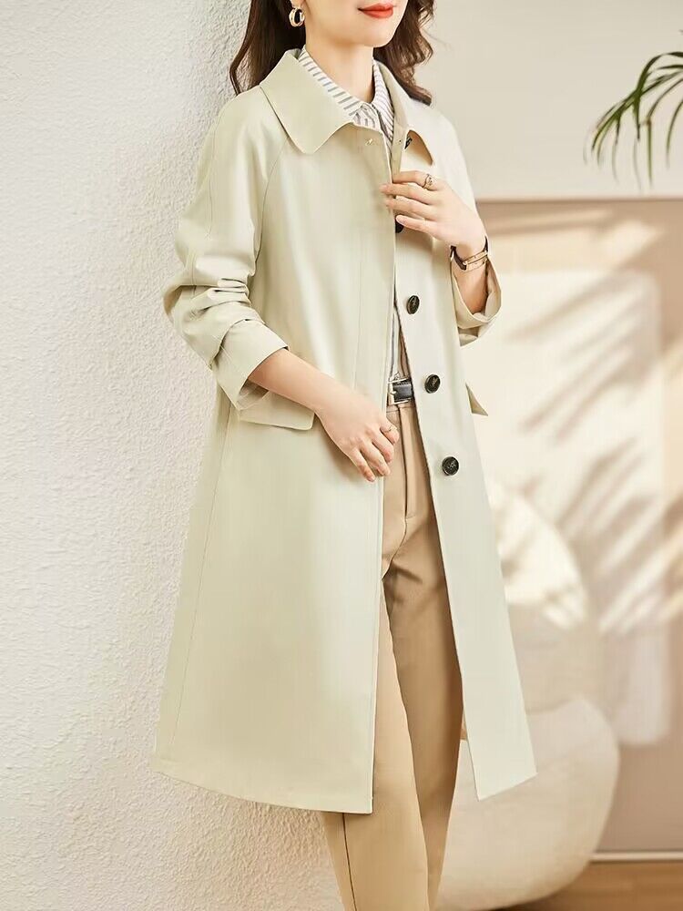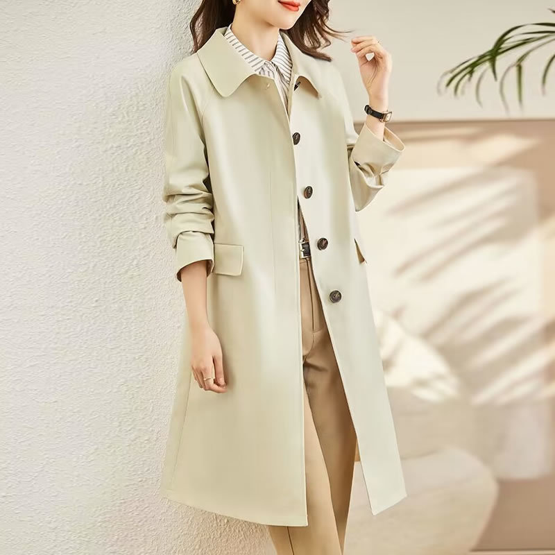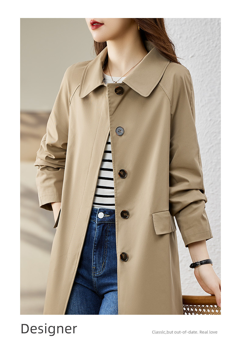 A6C [천 포함] 높은 윈드 브레이커 여성 중간 길이 2025 봄과 가을 새로운 캐주얼 다재다능한 느슨한 슬리밍 외관