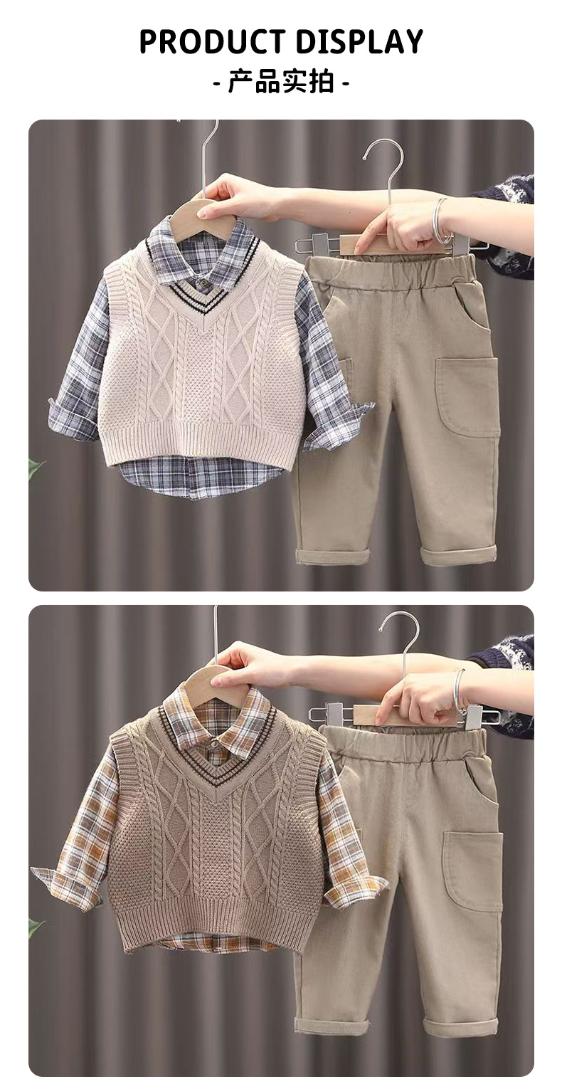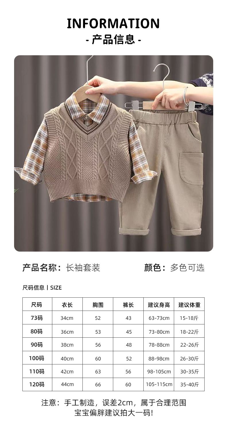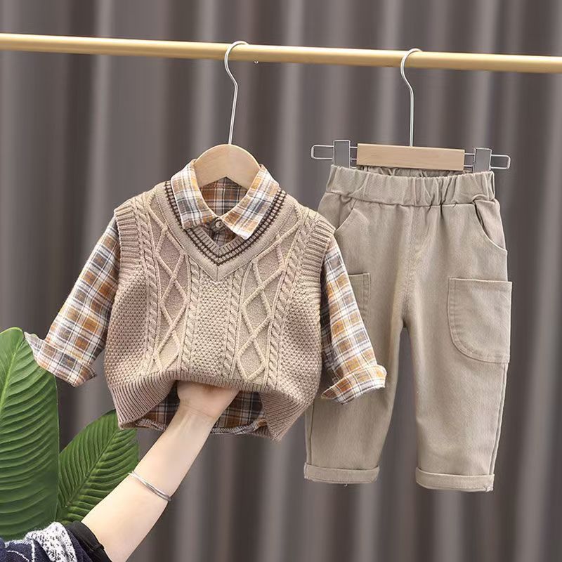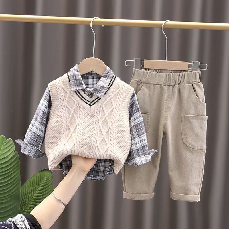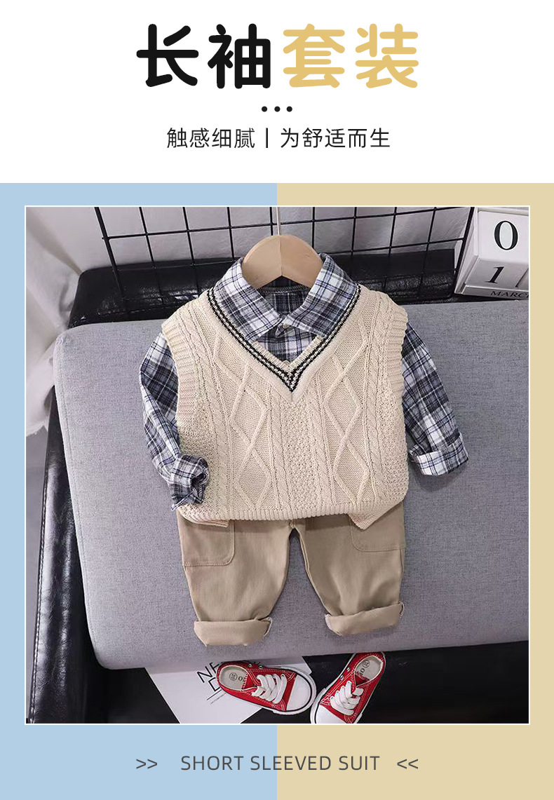 소년 가을 아기 스웨터 3 피스 양복 어린이 패션 소년 봄, 가을 단색 스웨터 3 피스 양복스토어 가기