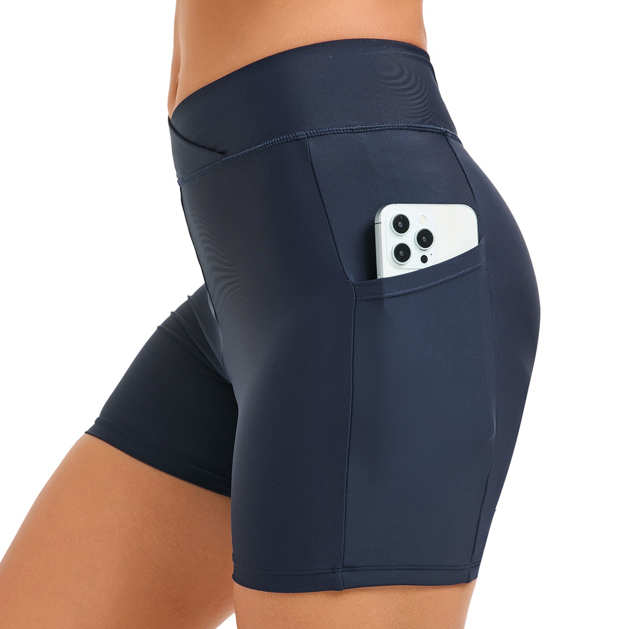재고 높은 허리 수영 트렁크 2025 새로운 유럽과 미국의 수영 트렁크 탄성 슬림 수영 트렁크 보수적 인 여성용 4 각 수영 트렁크