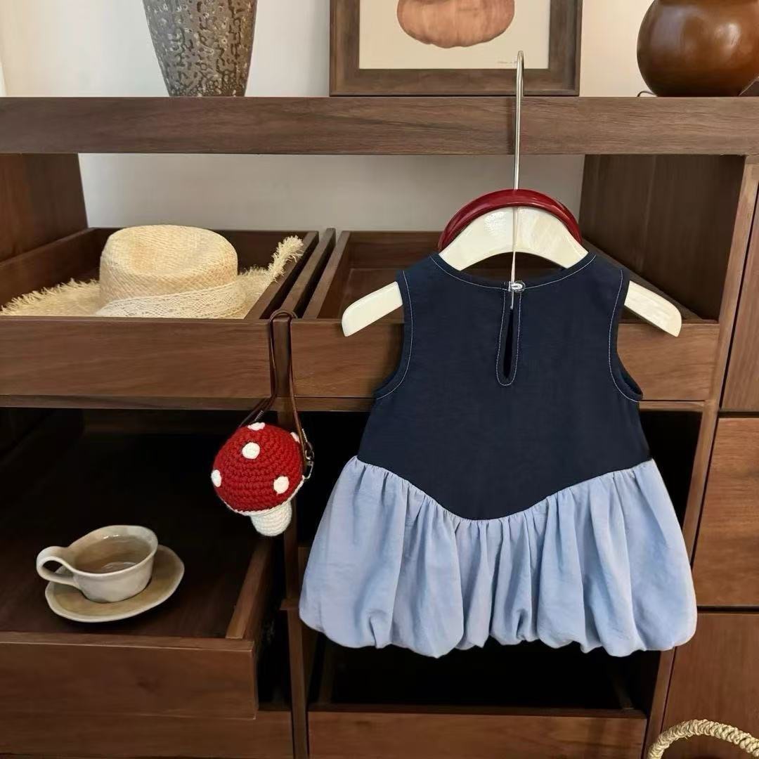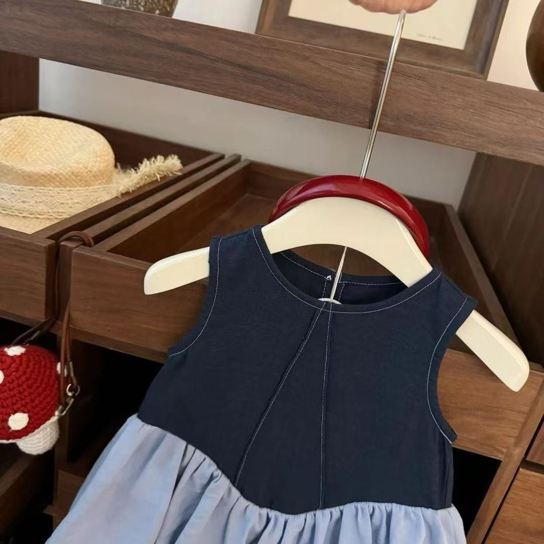 여자 여름 민소매 2025 조끼 새로운 스타일 공주 바느질 원피스 아기 어린이 치마스토어 가기