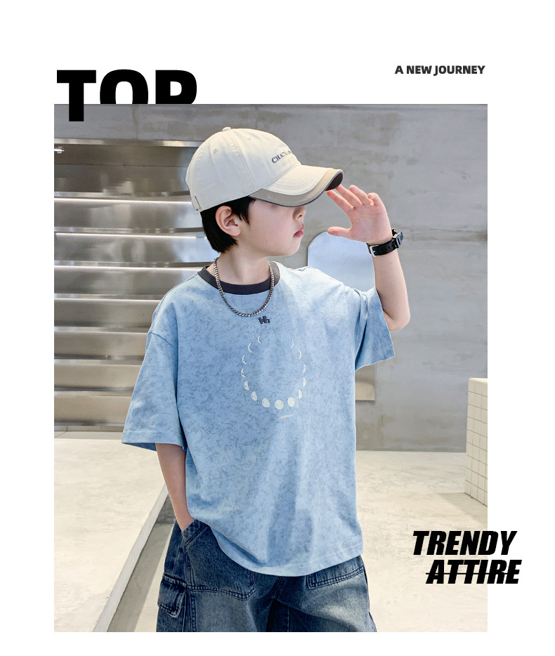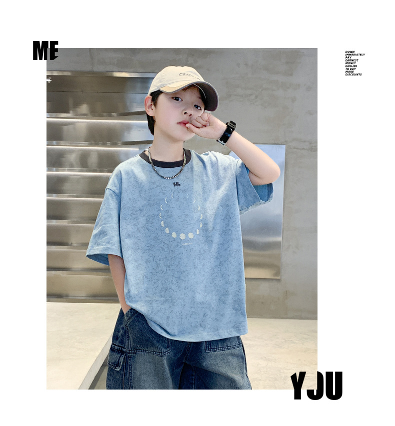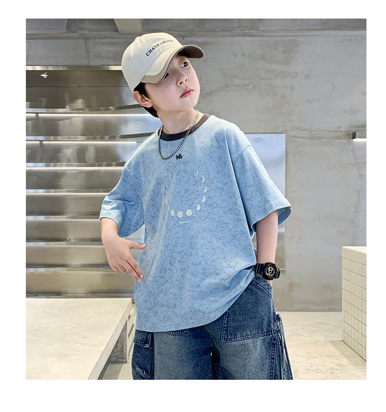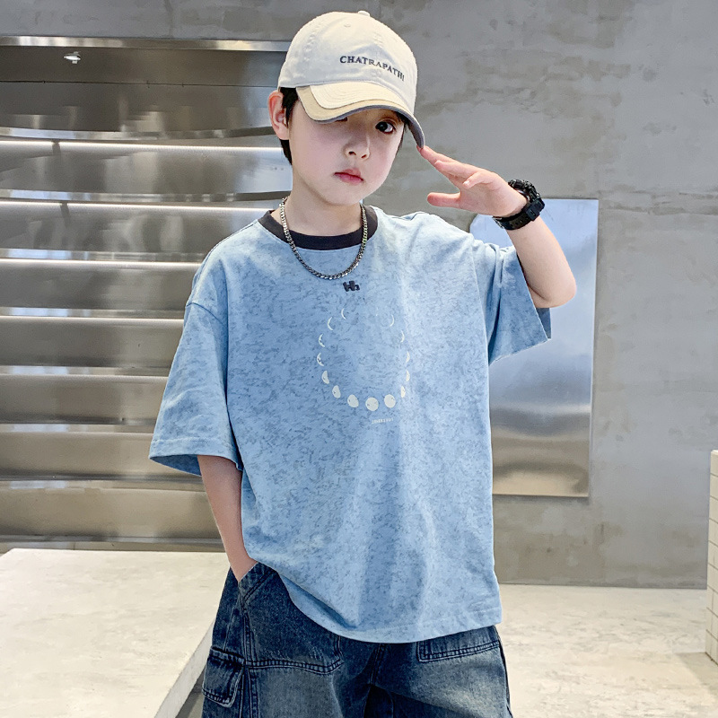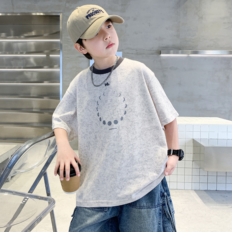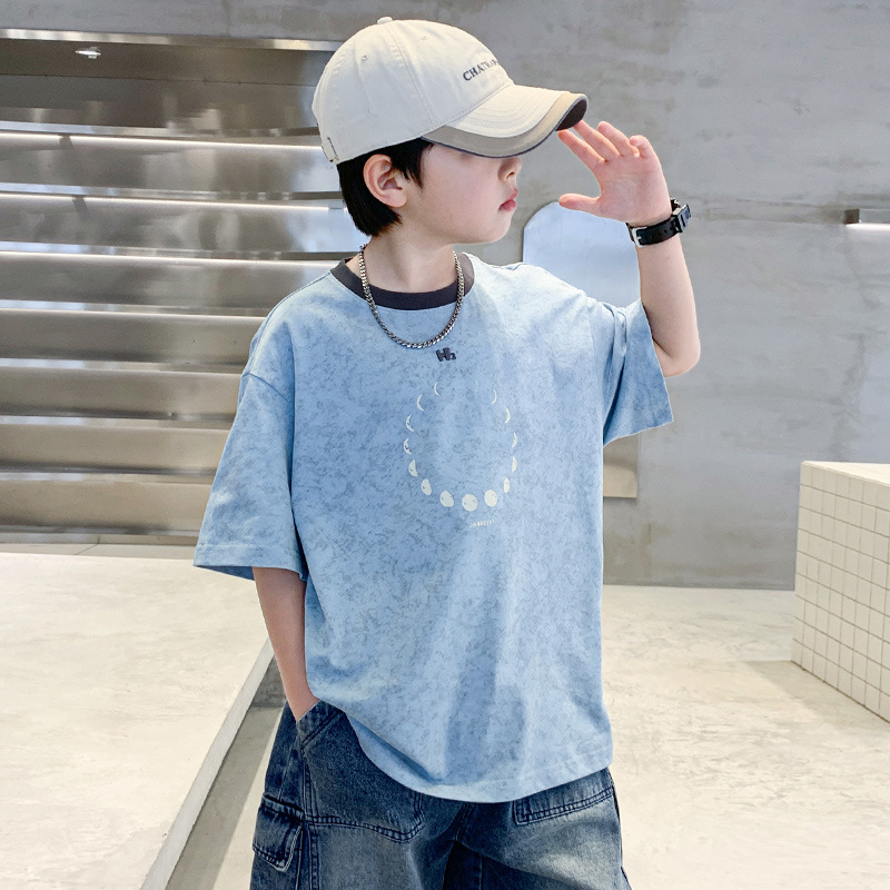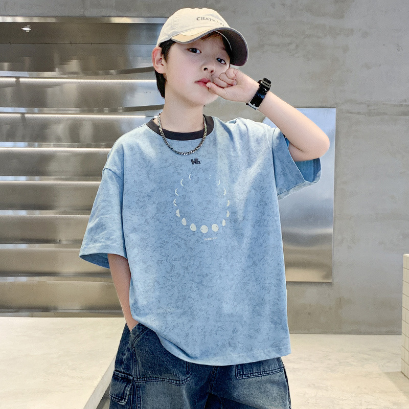 여름 소년 반팔 티셔츠 새로운 아동복 키즈 소년 문 T 성격 트렌디 쿨 십대 반소매 탑 크로스스토어 가기