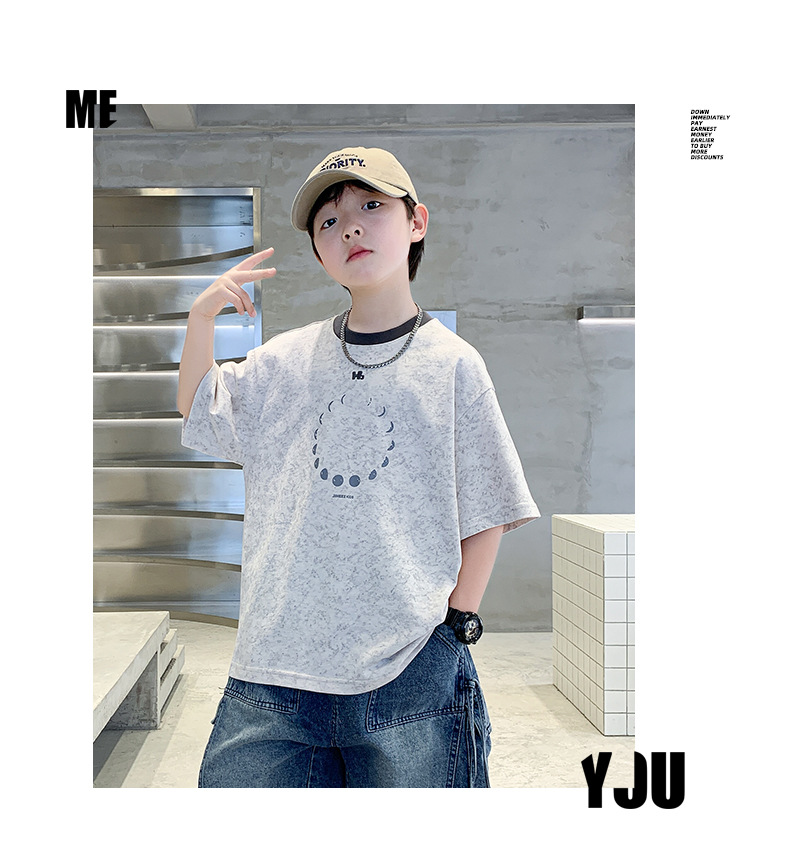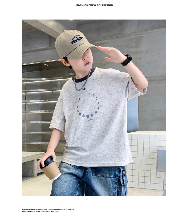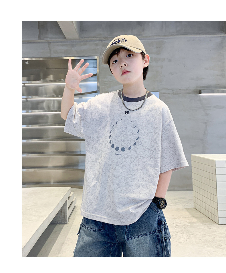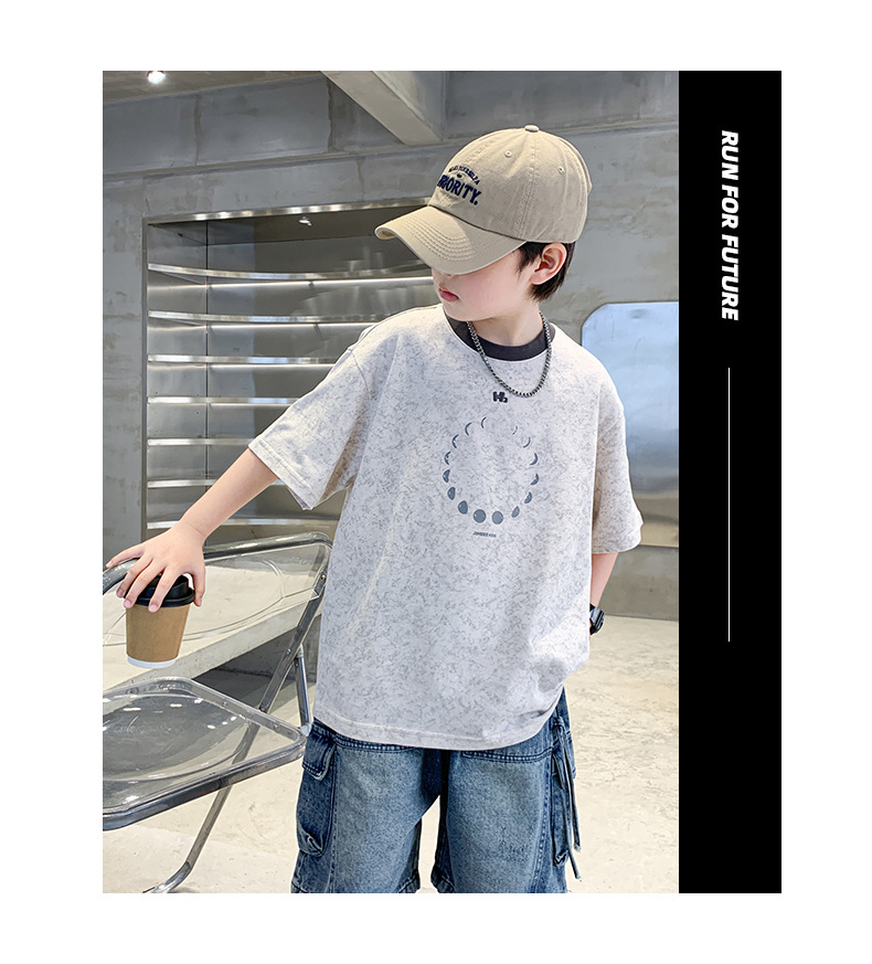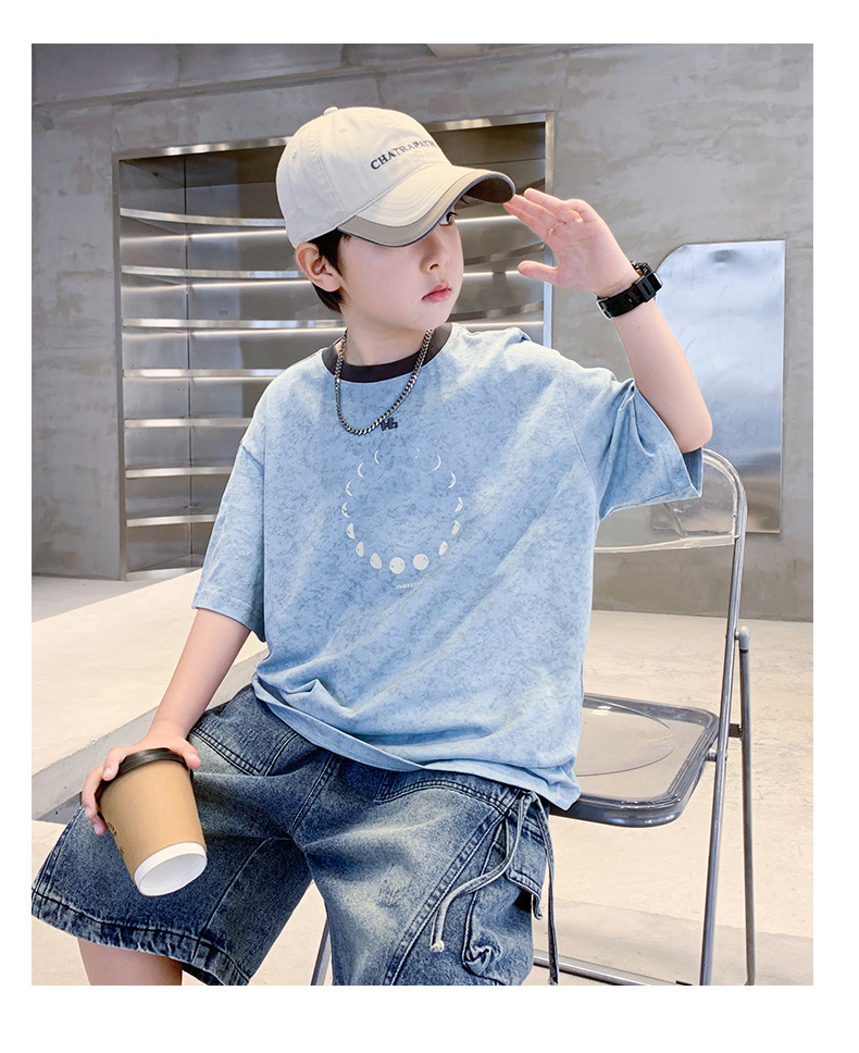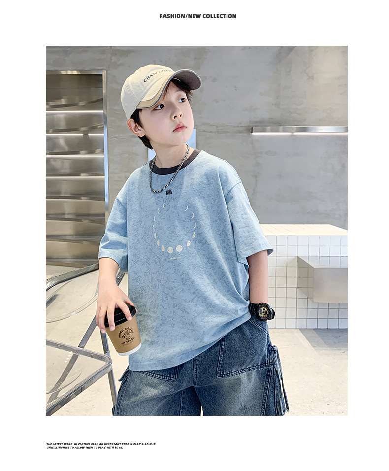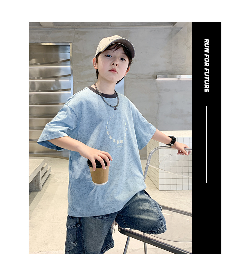 여름 소년 반팔 티셔츠 새로운 아동복 키즈 소년 문 T 성격 트렌디 쿨 십대 반소매 탑 크로스스토어 가기
