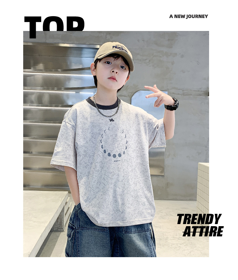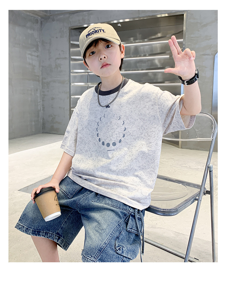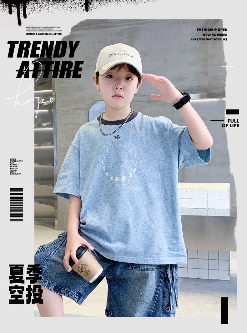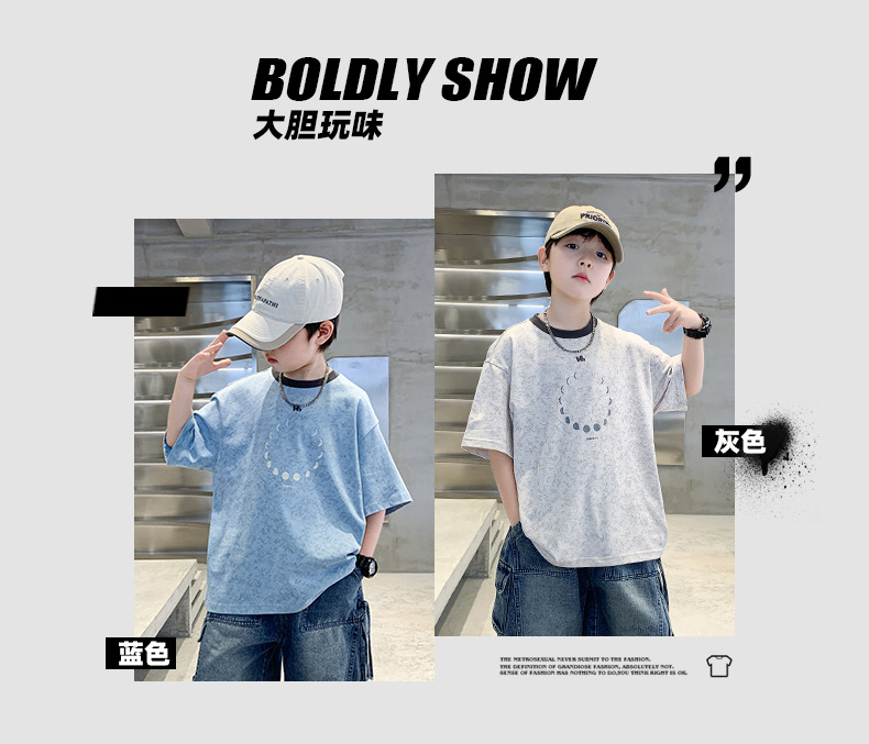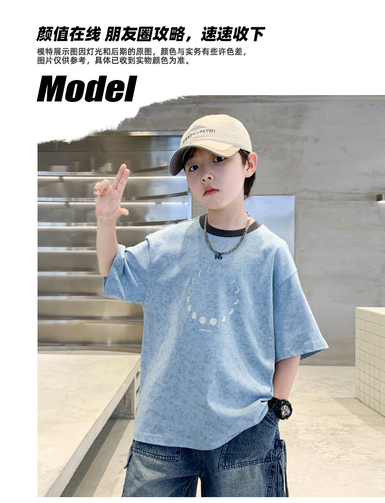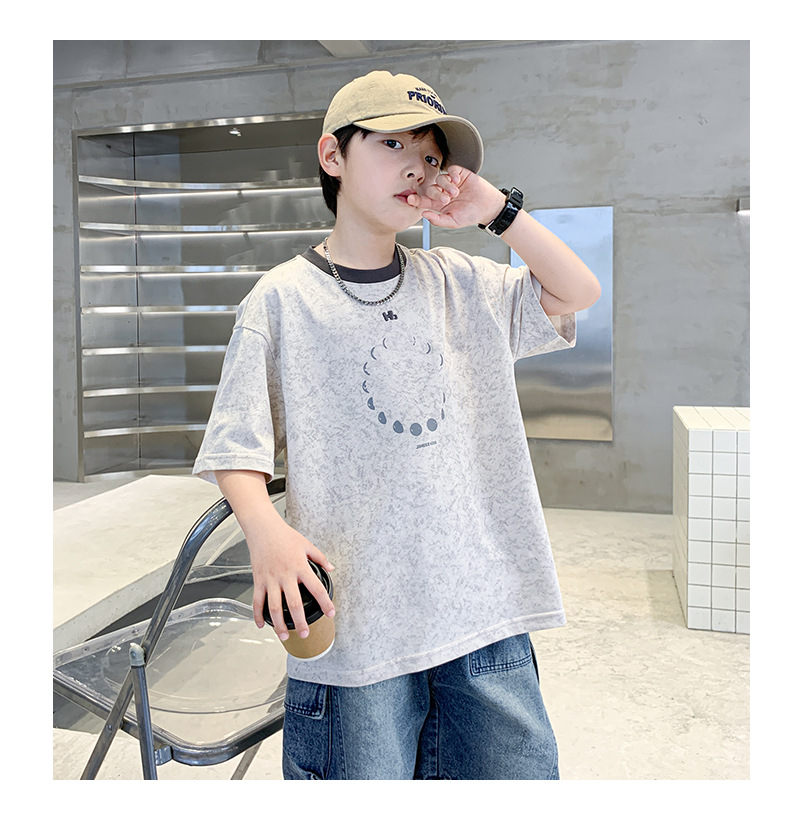 여름 소년 반팔 티셔츠 새로운 아동복 키즈 소년 문 T 성격 트렌디 쿨 십대 반소매 탑 크로스스토어 가기