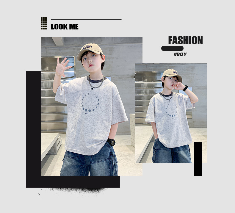 여름 소년 반팔 티셔츠 새로운 아동복 키즈 소년 문 T 성격 트렌디 쿨 십대 반소매 탑 크로스