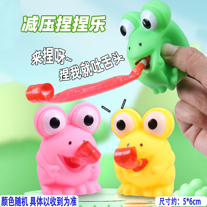 • 혀를 내미는 연한 노란색 개구리 4마리