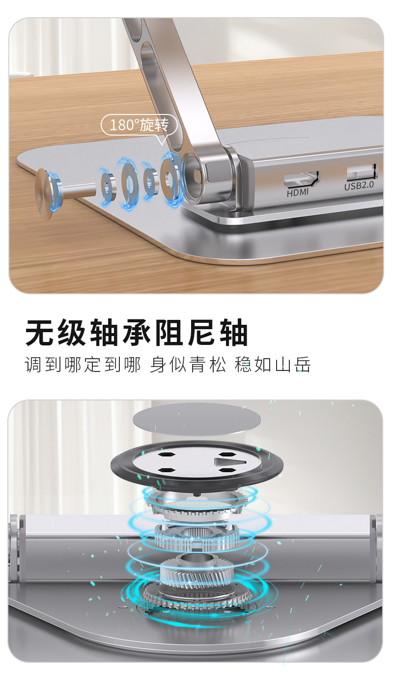 알루미늄 합금 노트북 스탠드, 태블릿 스탠드, 회전식 휴대용 도킹 스테이션, 냉각 스탠드, 안정적
