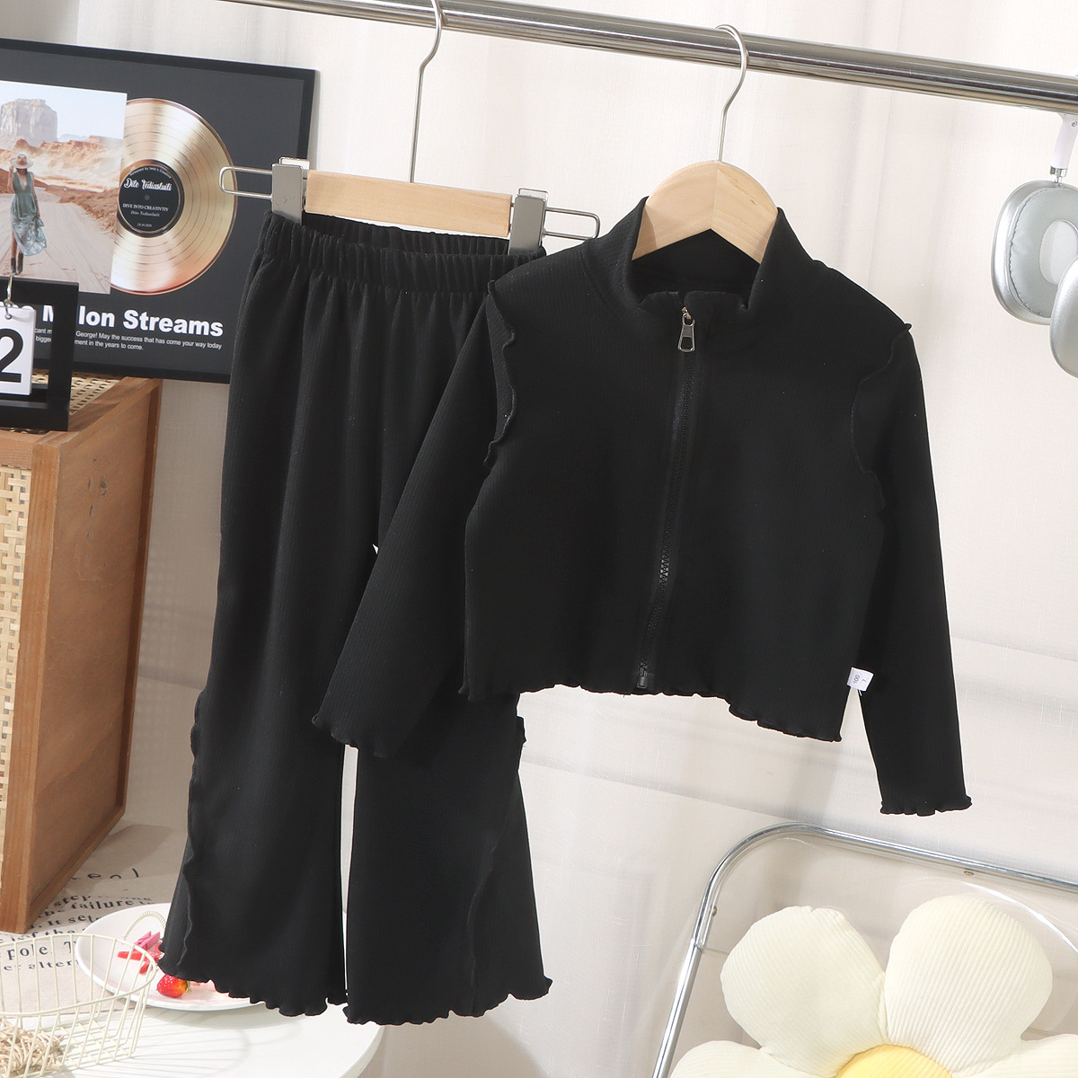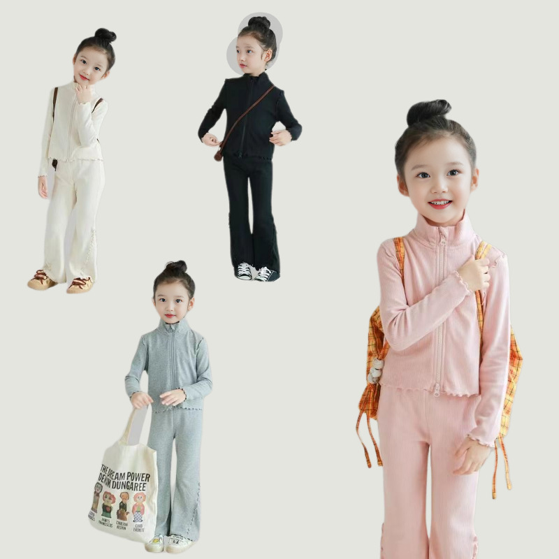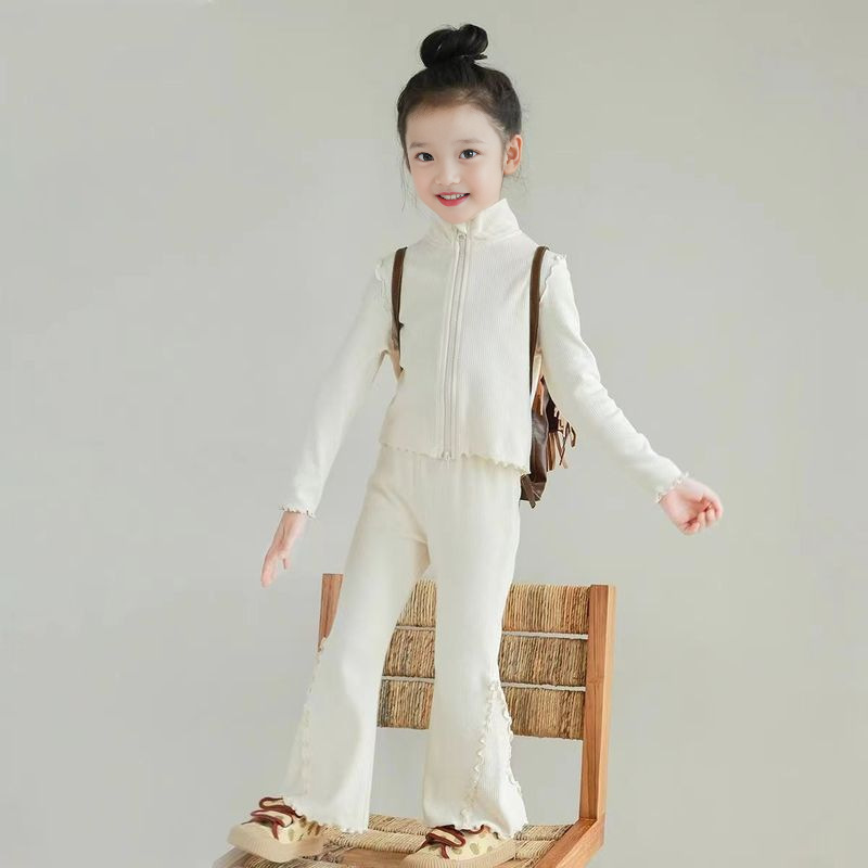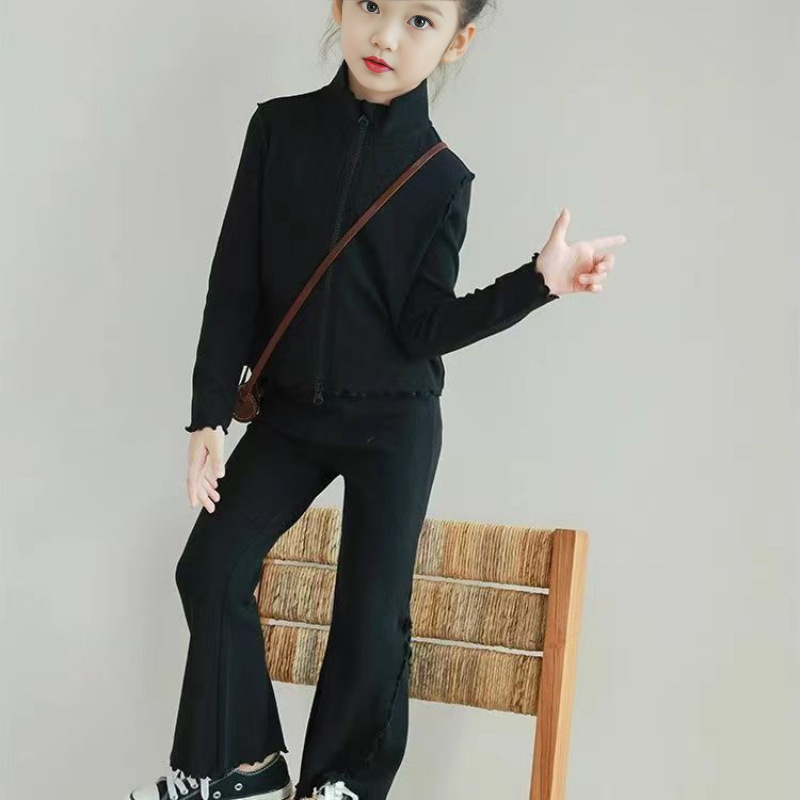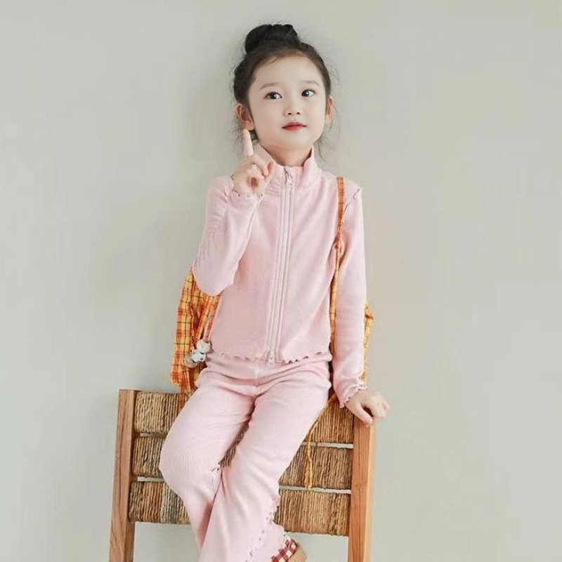 한국 가을 신작 아동용 스탠드 칼라 레이스 벨 바지 여아 패션 여아 개학복스토어 가기