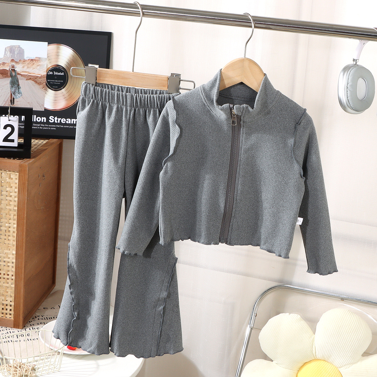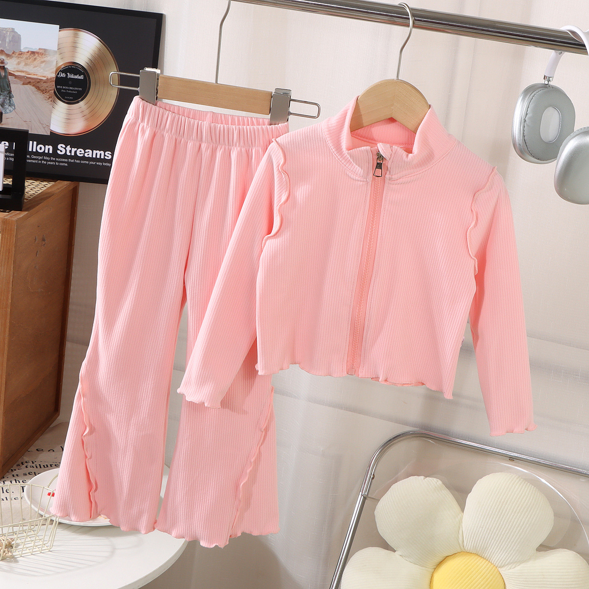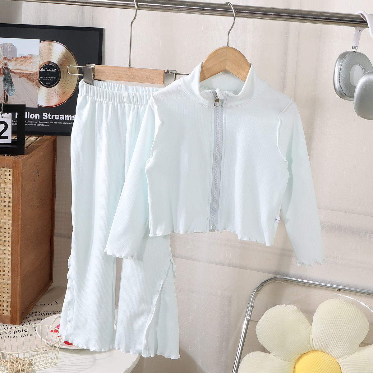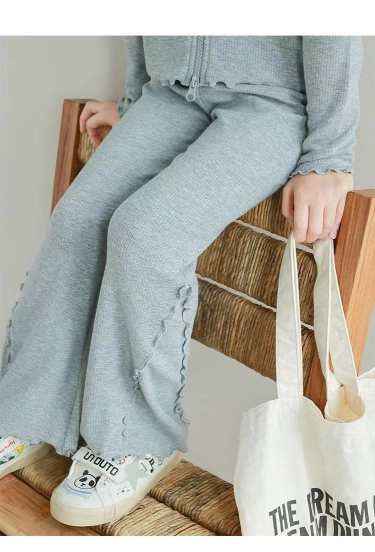 한국 가을 신작 아동용 스탠드 칼라 레이스 벨 바지 여아 패션 여아 개학복스토어 가기