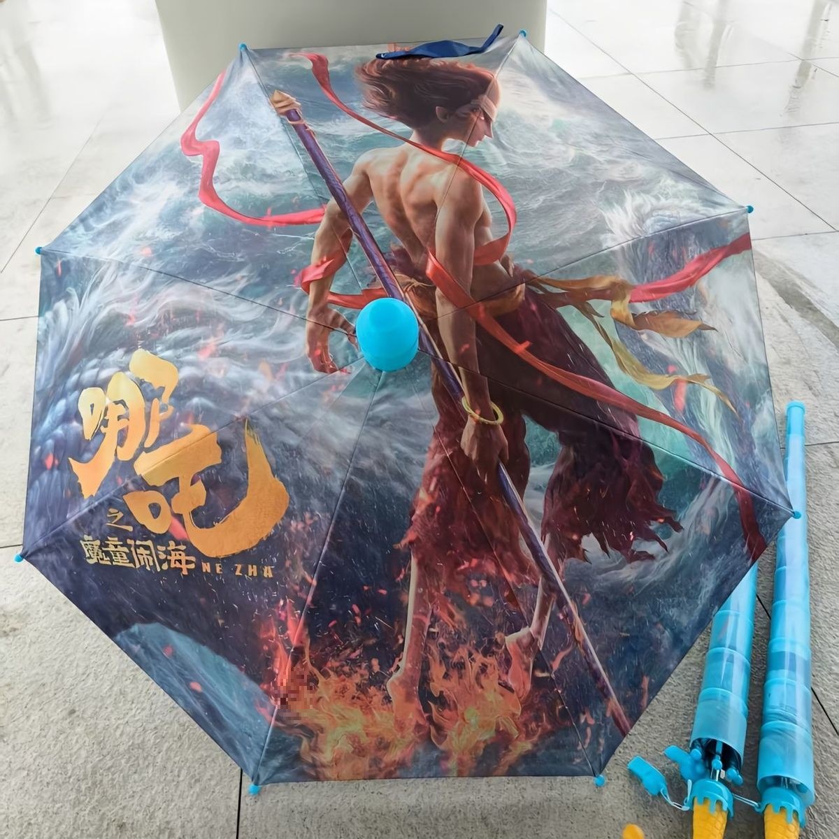 새로운 악마 Nezha 어린이 우산 Ao C 귀여운 만화 학생 검은 고무 맑고 비 이중 사용 양산 우산스토어 가기