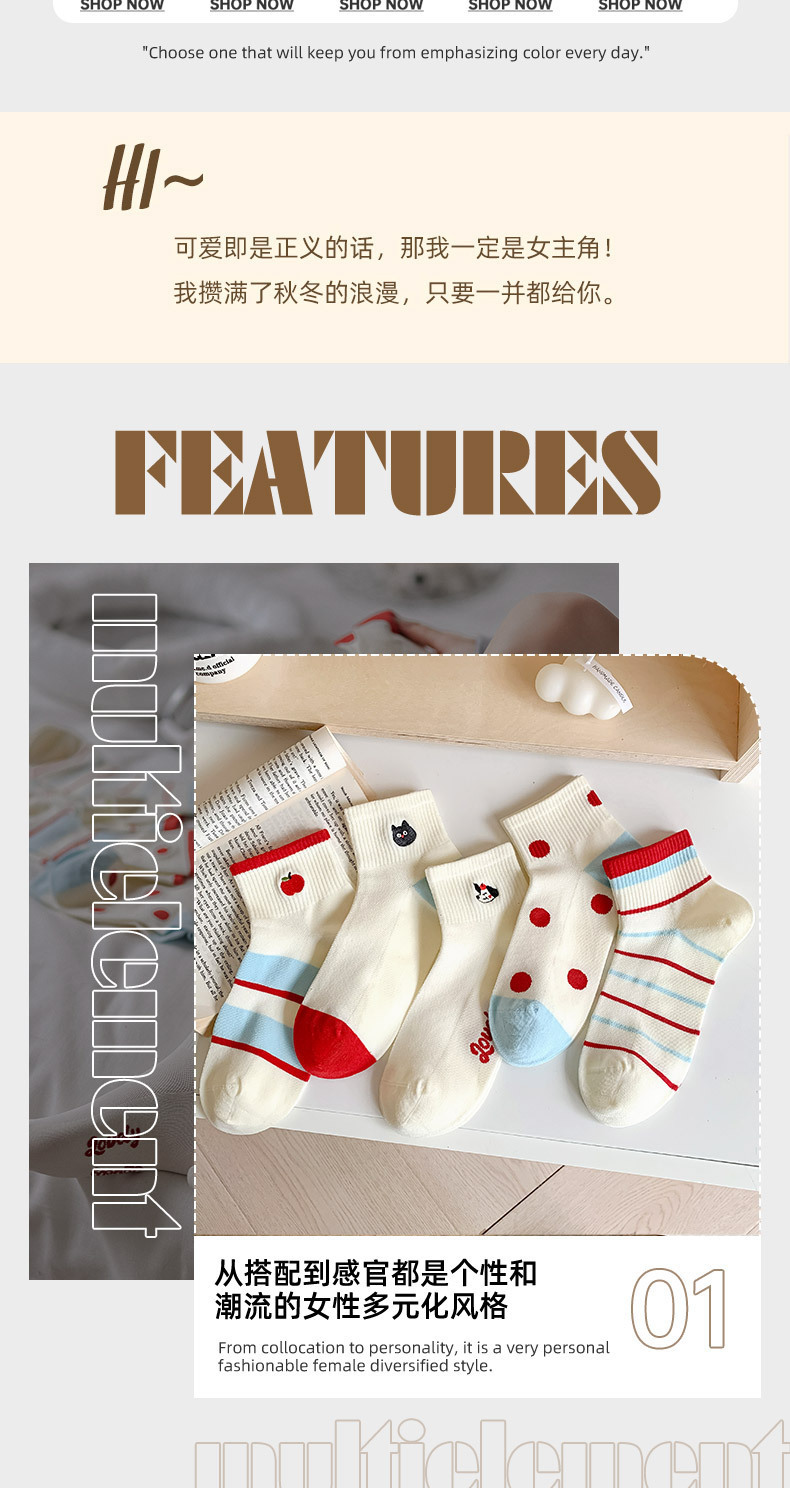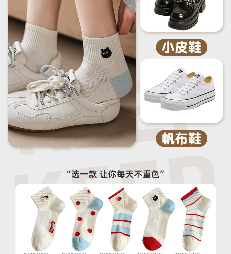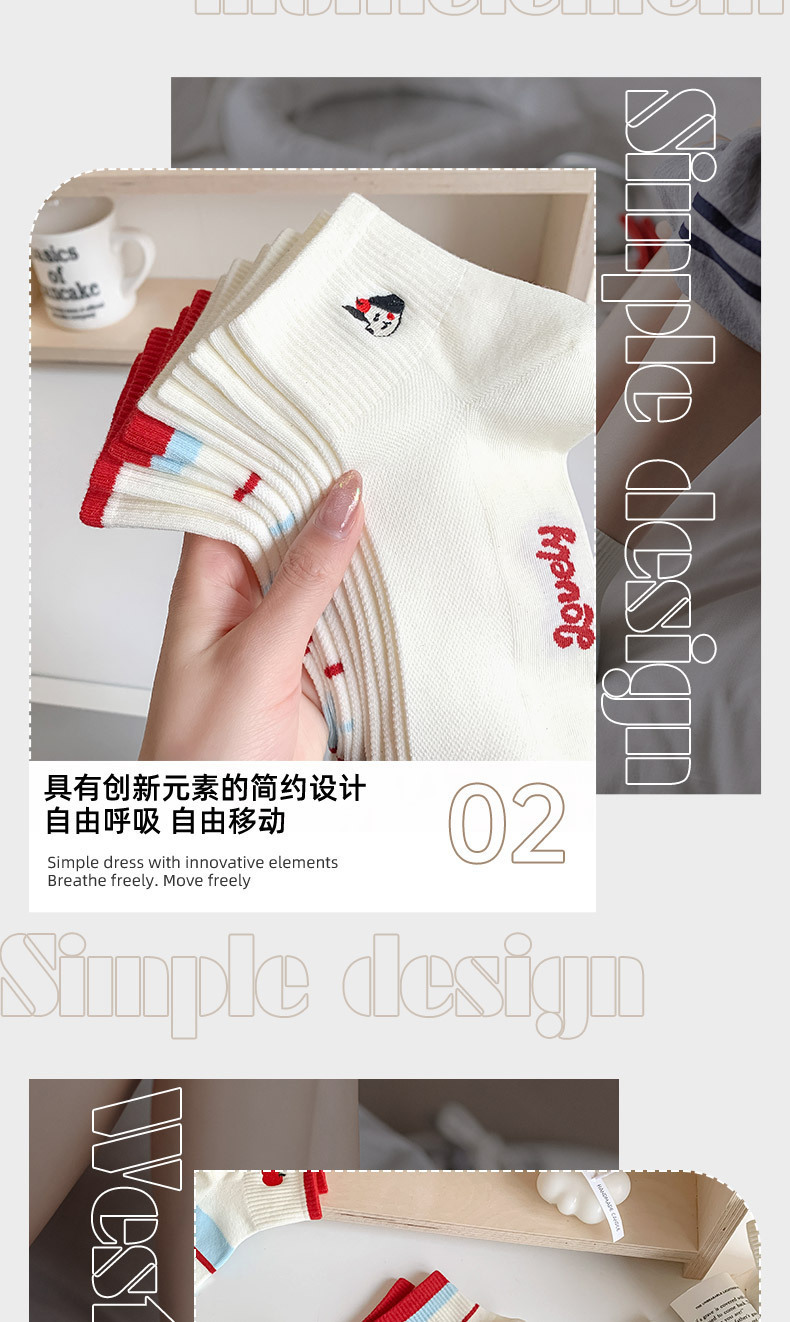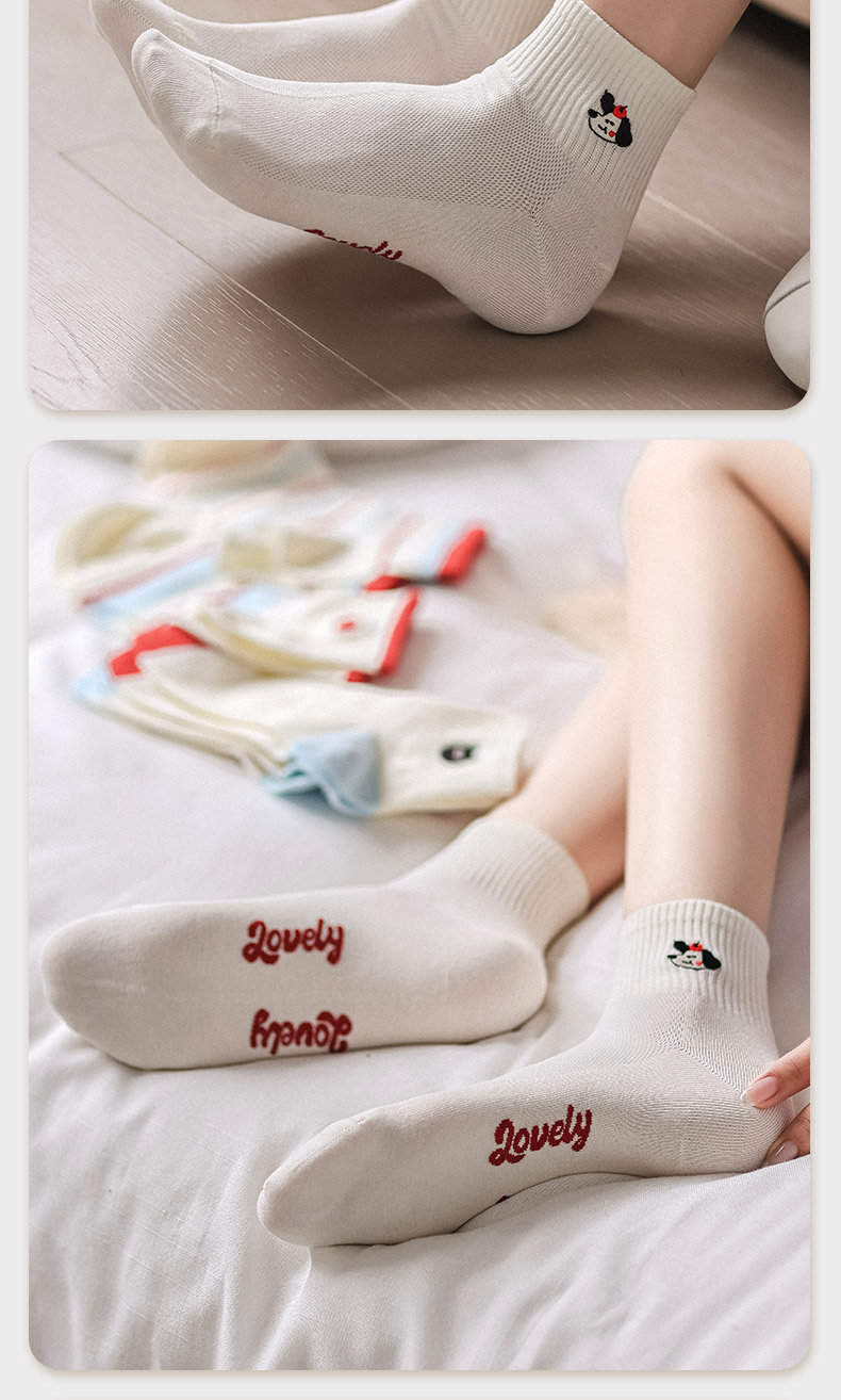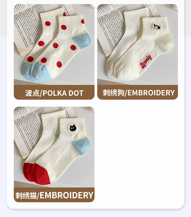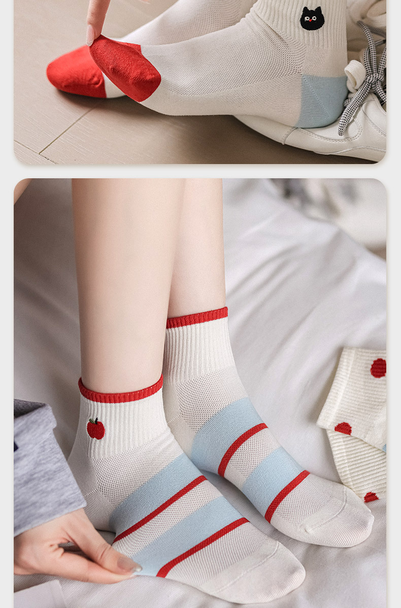 봄과 여름 귀여운 만화 자수 애플 짧은 튜브 면 여성 양말 모든 경기 컬러 대비 웨이브 도트 일본 대학 스타일 보트 양말스토어 가기