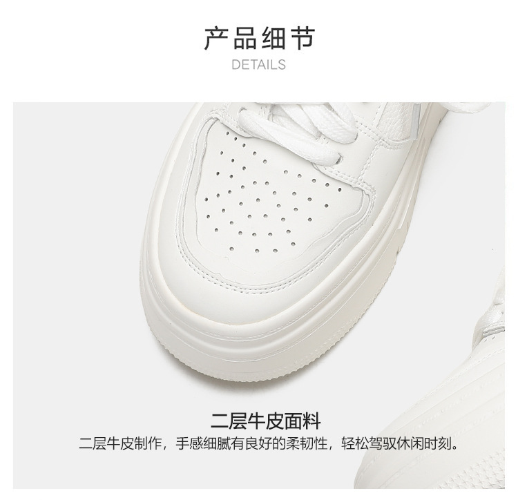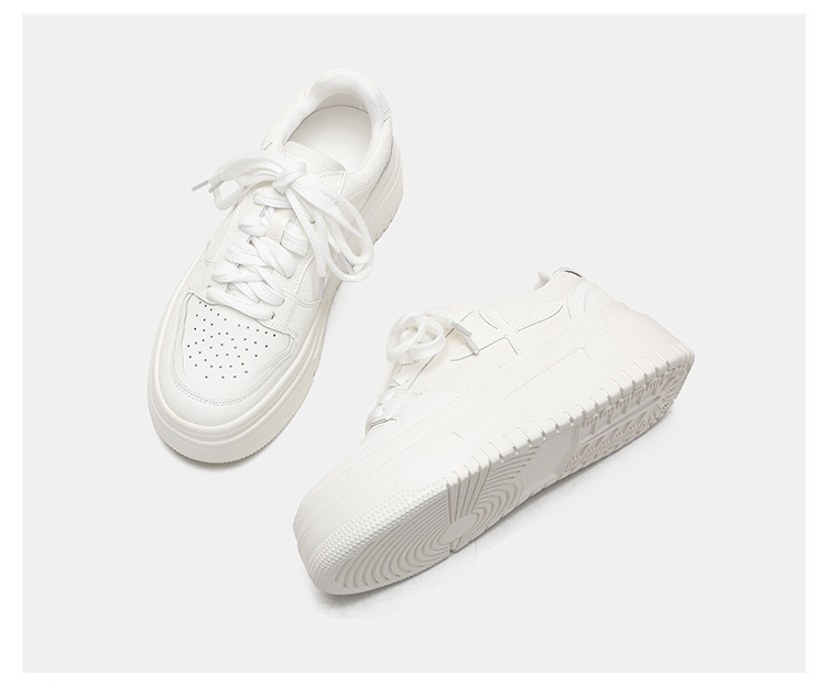 대학 스타일의 두꺼운 밑창 레이스 업 비스킷 신발 둥근 머리 얇은 캐주얼 화이트 보드 신발 2025 봄과 가을 여성을위한 새로운 흰색 신발스토어 가기