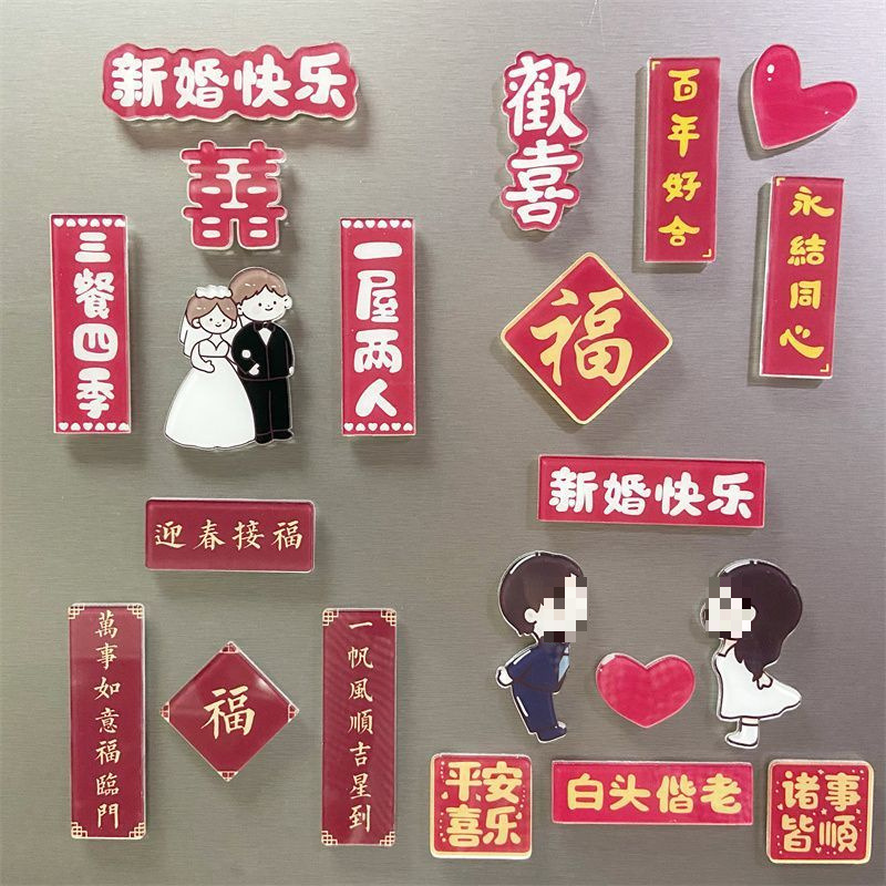 ∝【91% 호평률】창의적이고 축제적인 자석 냉장고 자석 봄 축제 축복 커플링 아크릴 자석 웨딩룸스토어 가기