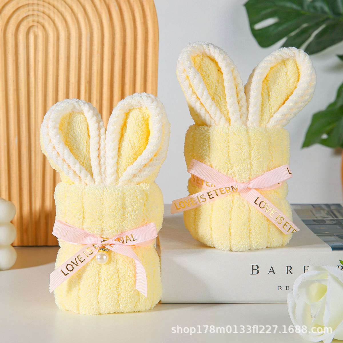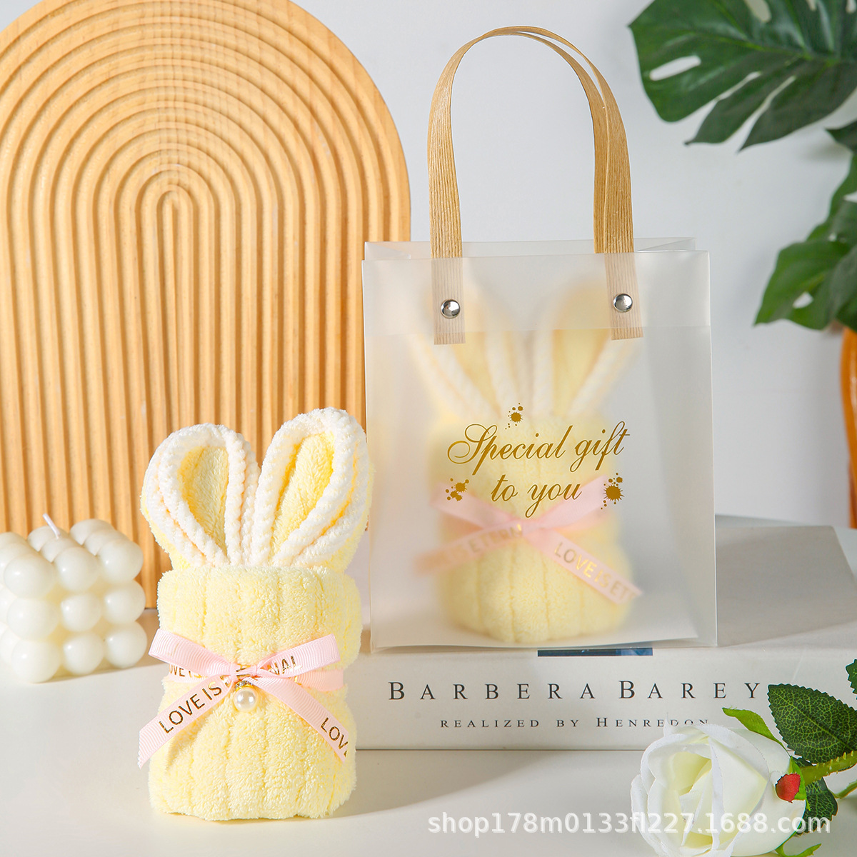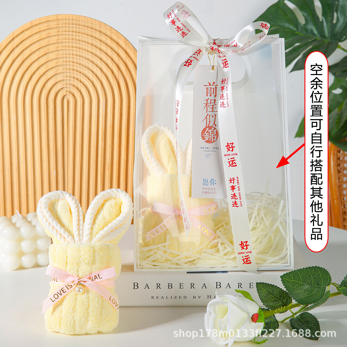 • 노란 토끼 수건 + PVC 가방 + 엘리베이터 + 리본 + 라피아